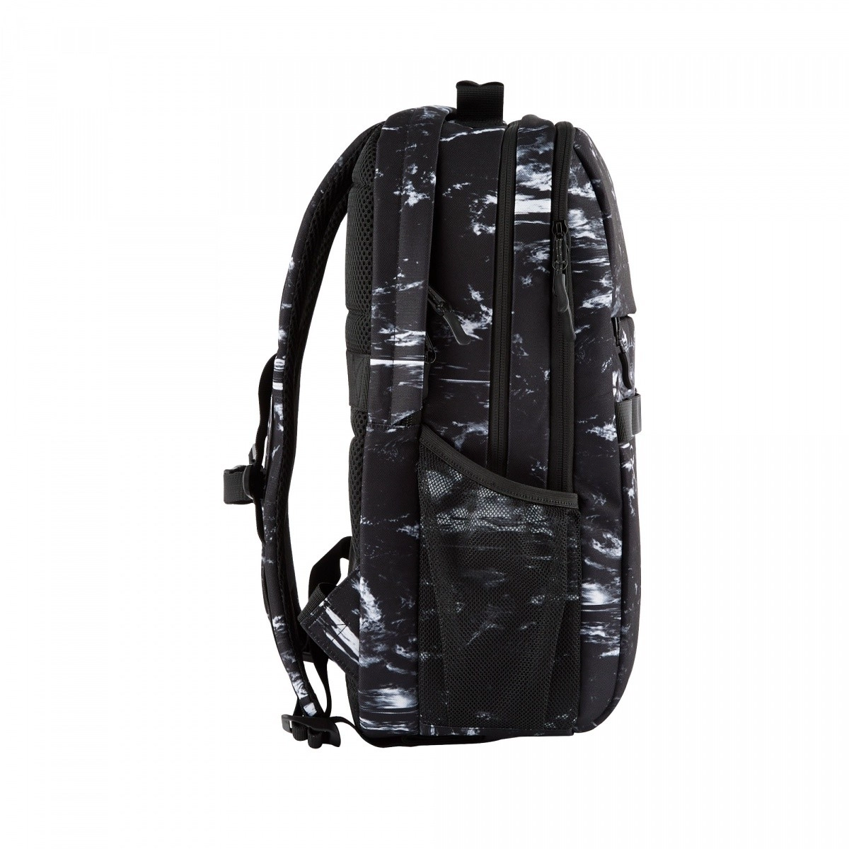 Przemyślany układ obejmuje kieszeń szybkiego dostępu na akcesoria, wewnętrzne etui na przybory do pisania, dwie boczne siatkowane kieszenie na butelkę oraz praktyczne pętle do przypięcia dodatkowych akcesoriów. Wyściełane szelki i oddychający tylny panel zapewniają komfort przez cały dzień, nawet przy pełnym obciążeniu.