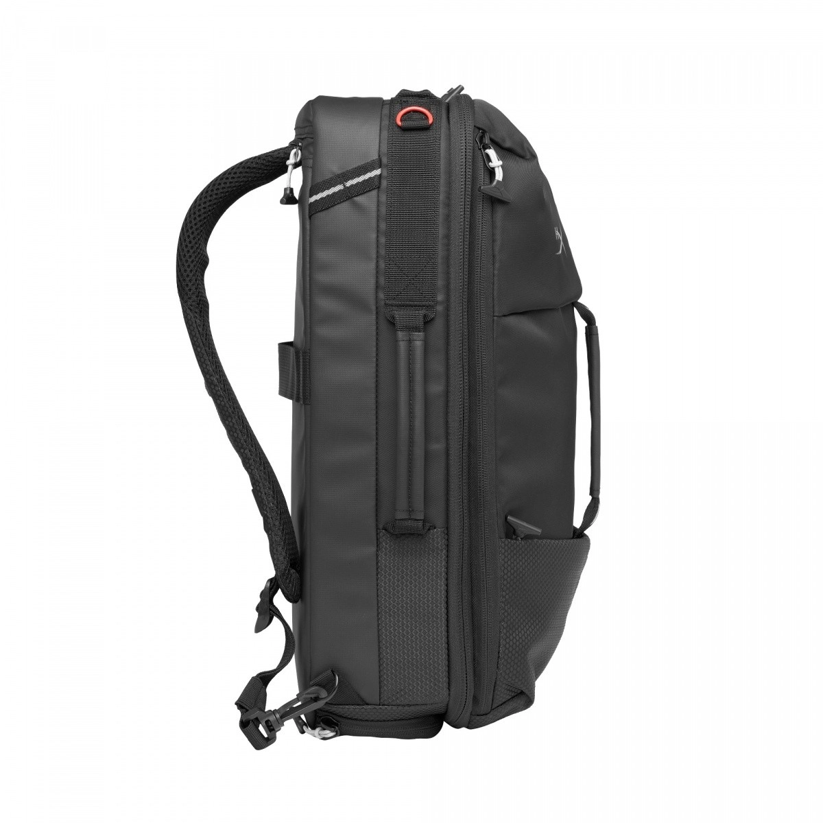 Wytrzymała konstrukcja z częściowo recyklingowanego poliestru 600D chroni wyposażenie przed przetarciami, rozdarciami i niepogodą. Wyściełane szelki, górny i boczny uchwyt oraz pasek do mocowania na rączce walizki zapewniają więcej opcji przenoszenia. Przednia kieszeń szybkiego dostępu pomieści drobiazgi i przekąski, a wewnętrzny organizer utrzyma porządek w kablach i dodatkach.
