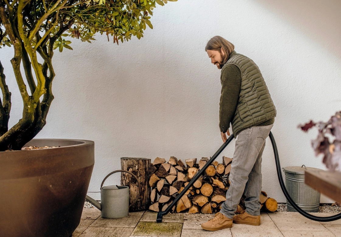 Dzięki kompaktowej konstrukcji, 4‑metrowemu przewodowi zasilającemu i 2‑metrowemu wężowi ssącemu dosięgniesz wszędzie, gdzie potrzeba. Praktyczne uchwyty na nasadki, hak na przewód i możliwość zawieszenia węża na głowicy urządzenia oszczędzają miejsce i utrzymują wszystko pod ręką. Funkcja nadmuchu pomoże tam, gdzie nie da się odkurzać – na przykład z liści i zanieczyszczeń w szczelinach.