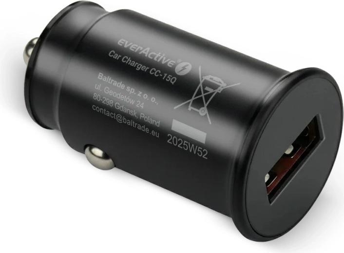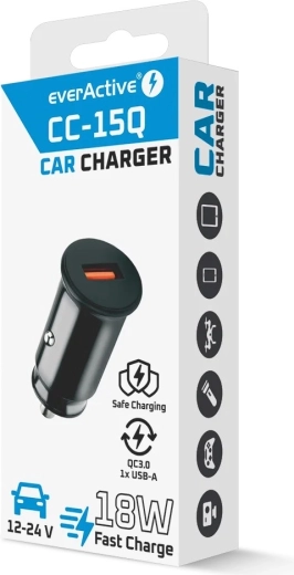 Ładowarka samochodowa everActive CC-15Q z szybkim ładowaniem QC 3.0, 18 W, 1x USB-A