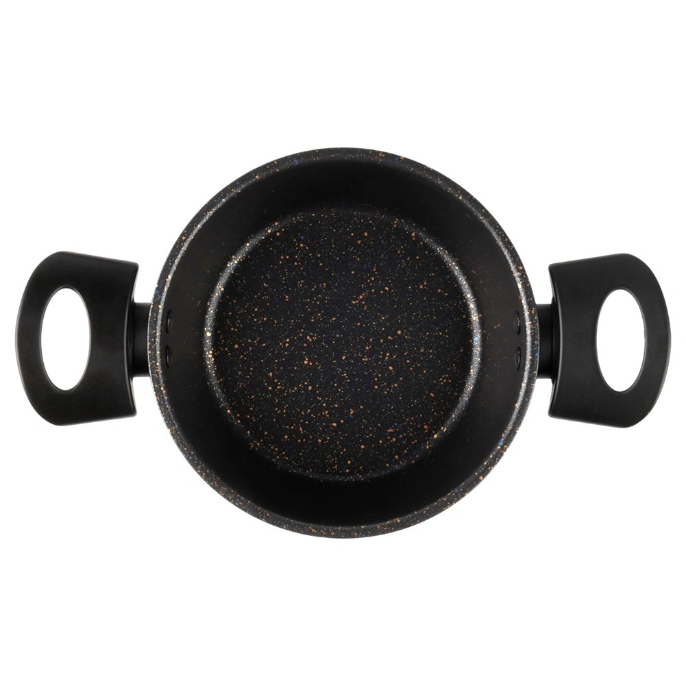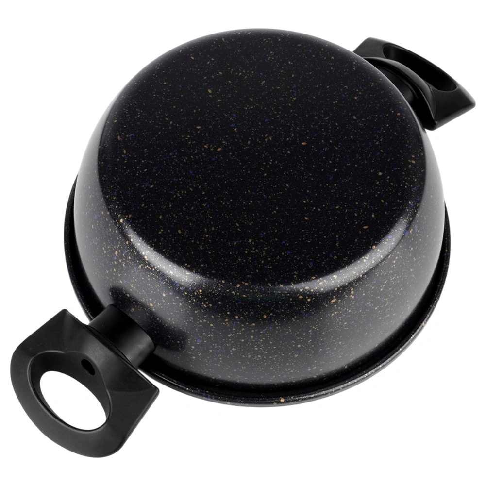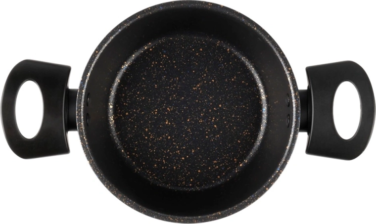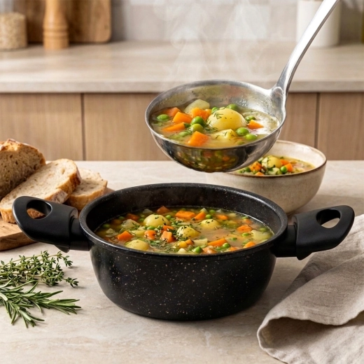 Praktyczny garnek z nieprzywierającą granitową powłoką ułatwia przygotowanie zup, sosów i warzyw. Korpus z mocnej stali węglowej równomiernie rozprowadza ciepło, a powierzchnia o efekcie kamienia minimalizuje przywieranie i skraca sprzątanie. Ergonomiczne boczne uchwyty z wytrzymałego tworzywa uprzyjemniają przenoszenie z płyty na stół.