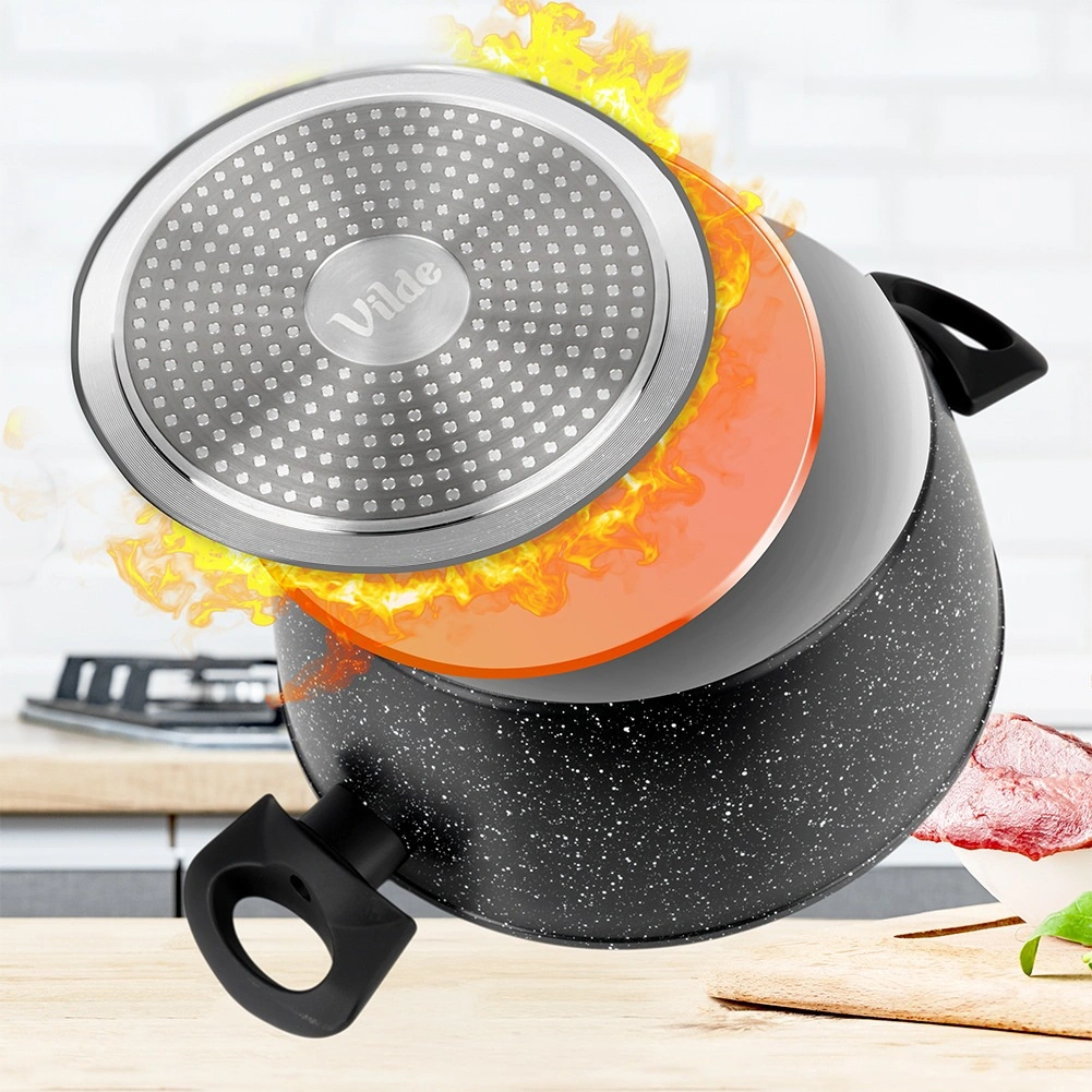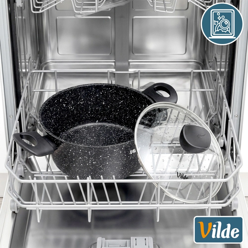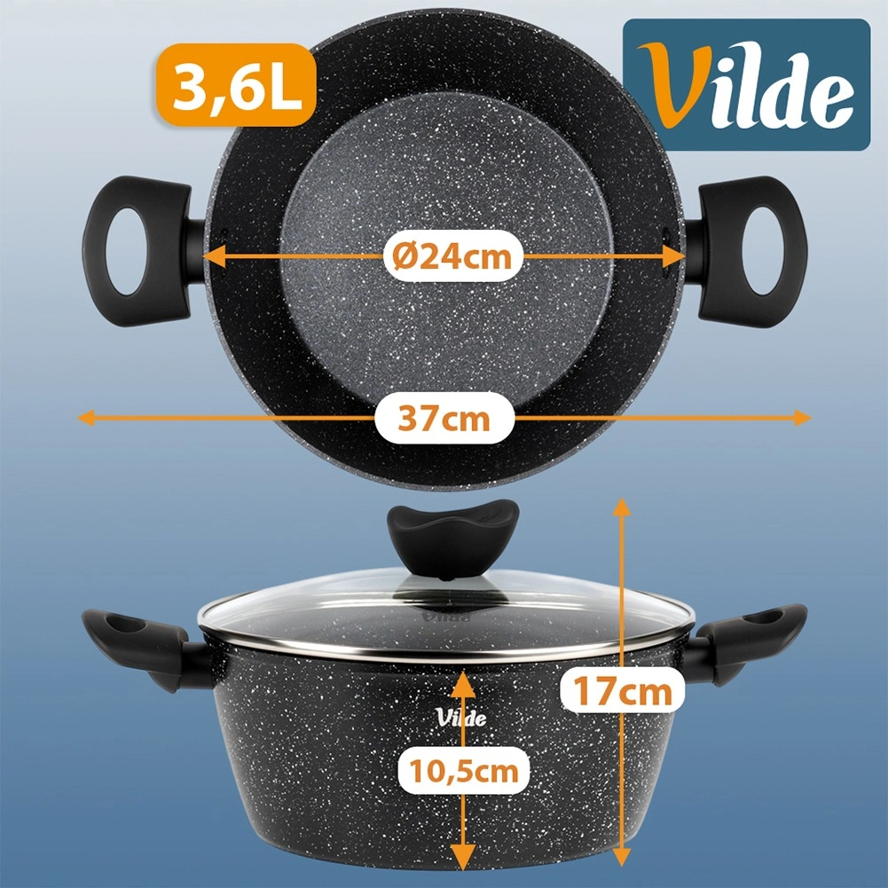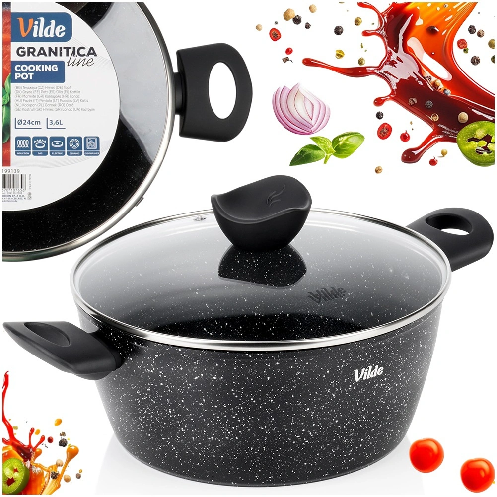 Praktyczny garnek o pojemności 3,6 l z serii VILDE GRANITICA łączy trwały odlew aluminiowy z nieprzywierającą powłoką granitową dla zdrowego gotowania z minimalną ilością tłuszczu. W zestawie szklana pokrywka z otworem odparowującym oraz wygodne uchwyty Soft Touch. Odpowiedni na indukcję, gaz, prąd i ceramikę, a także nadaje się do zmywarki.