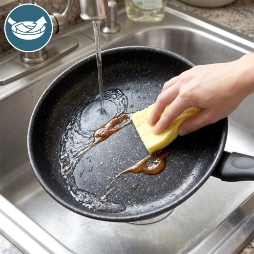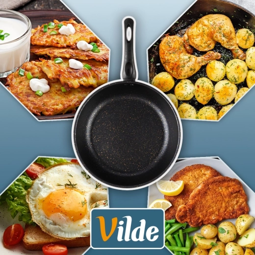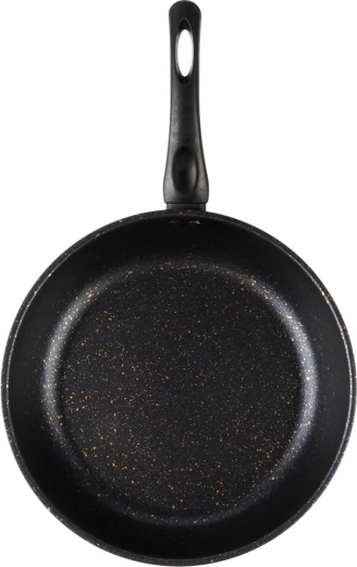 Specjalna powłoka z efektem granitu zapobiega przywieraniu i pozwala gotować z minimalną ilością oleju. Jedzenie łatwo się odkleja, a patelnia szybko się czyści.