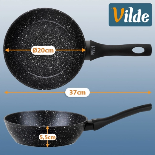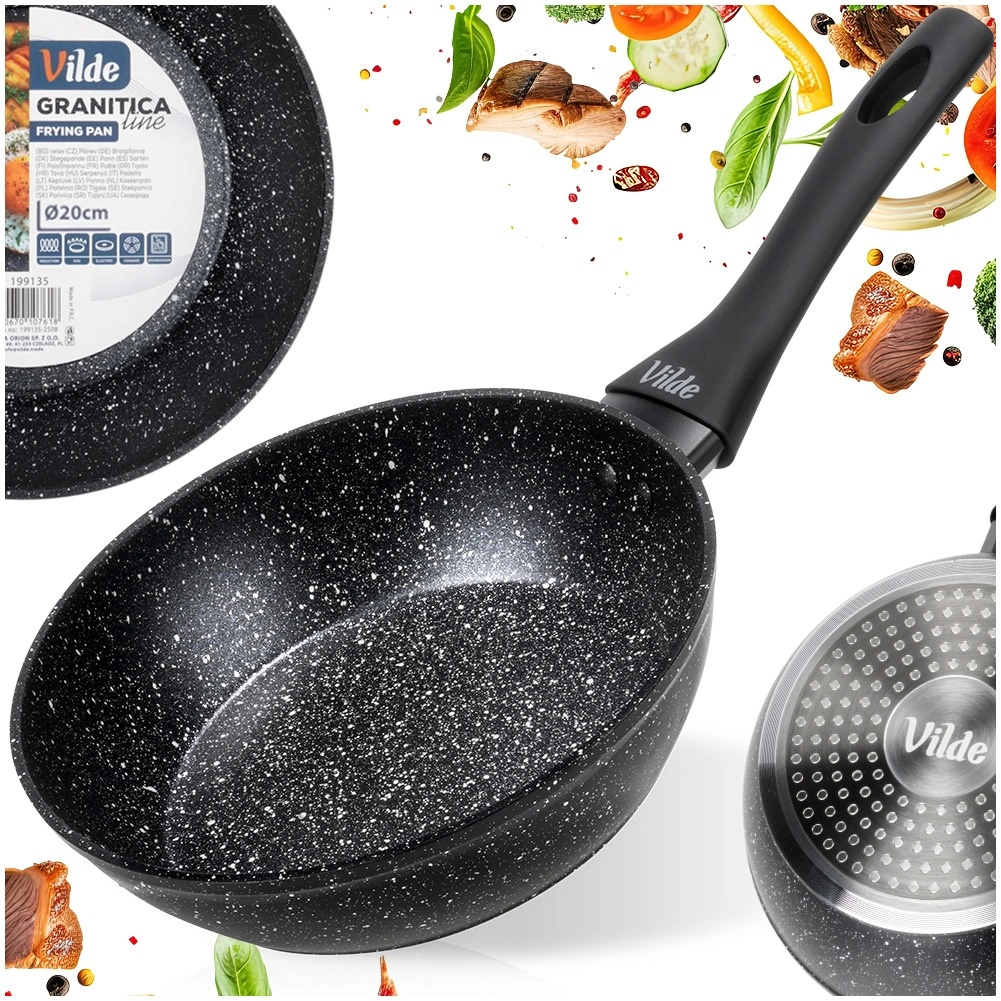 Kompaktowa granitowa patelnia o średnicy 20 cm i pojemności 1,2 l do codziennego gotowania. Oferuje nieprzywierającą kamienną powłokę, szybkie i równomierne rozprowadzanie ciepła oraz uniwersalne użycie na wszystkich rodzajach kuchenek, w tym indukcyjnych. Ergonomiczny uchwyt soft touch doskonale leży w dłoni, a patelnię można myć w zmywarce.