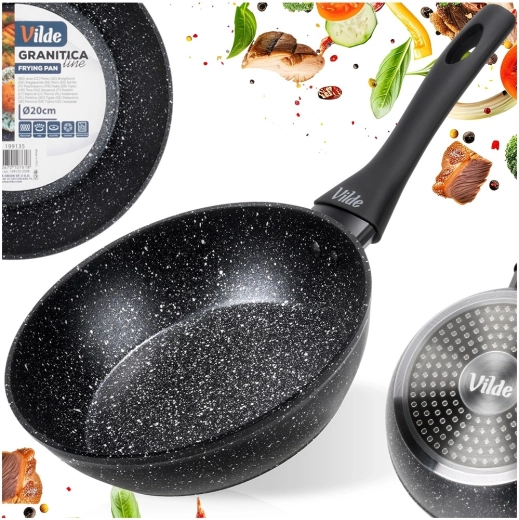Stylowa i wytrzymała patelnia z linii Granitica wykonana jest z odlewu aluminiowego z nieprzywierającą żwirową (granitową) powłoką, która pozwala gotować z minimalną ilością tłuszczu i ułatwia czyszczenie. Dzięki kompaktowym wymiarom 20 cm jest idealna do jajek, warzyw, mniejszych porcji mięsa oraz szybkiego podgrzewania.