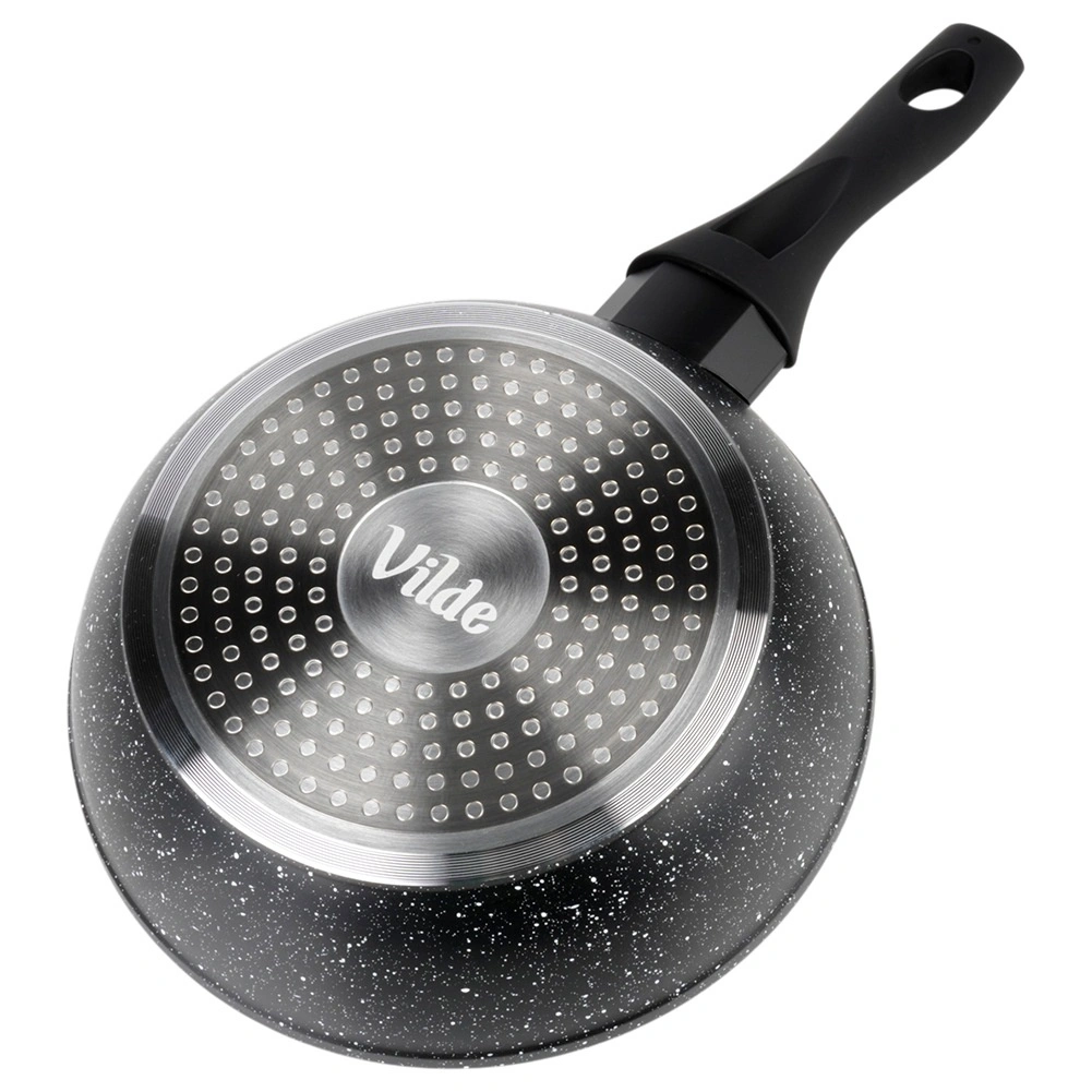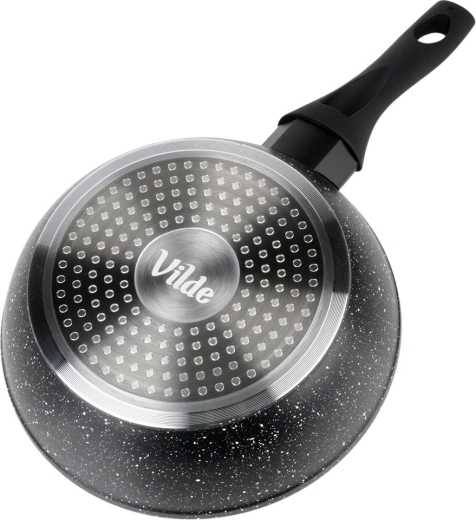 Grube dno zapewnia szybkie i oszczędne nagrzewanie oraz równomierne rozprowadzenie ciepła. Ergonomiczny uchwyt z miękką powierzchnią soft touch gwarantuje bezpieczny chwyt i ma praktyczny otwór do zawieszenia. Patelnię można używać na wszystkich rodzajach płyt – indukcyjnych, gazowych, elektrycznych i ceramicznych, a także myć w zmywarce.