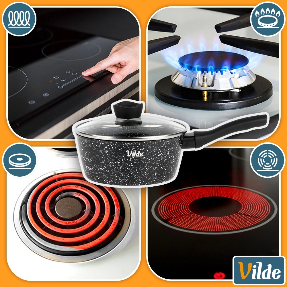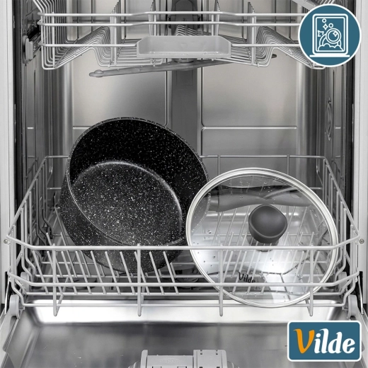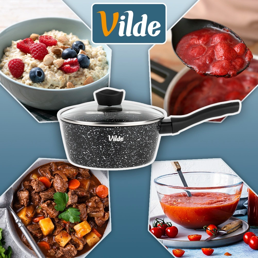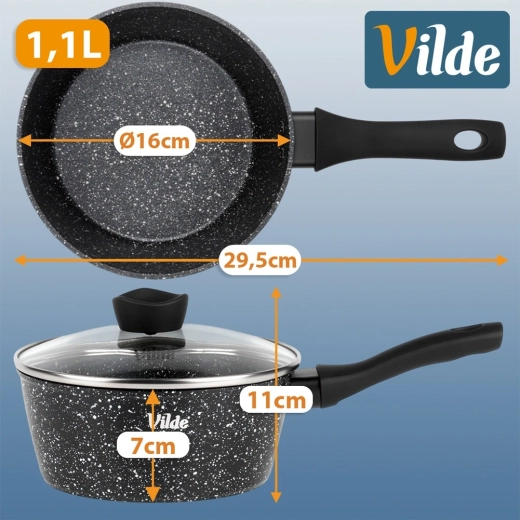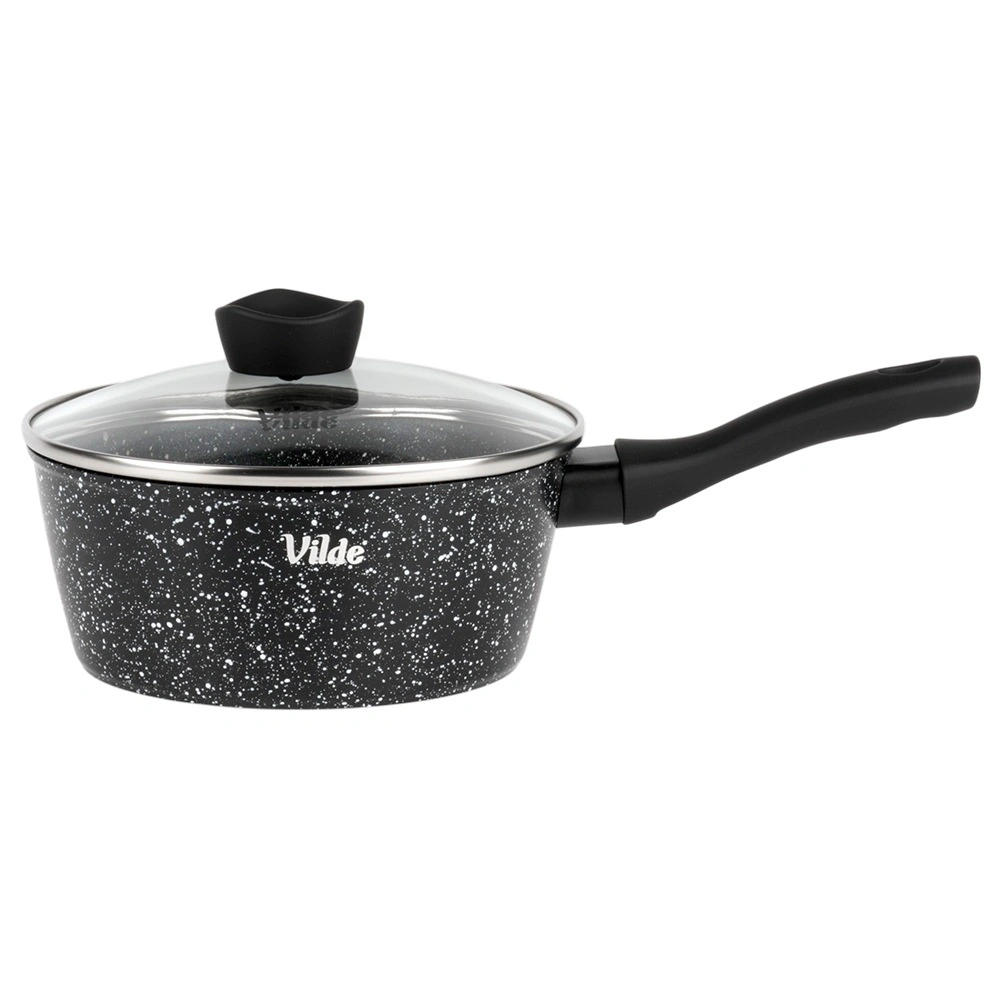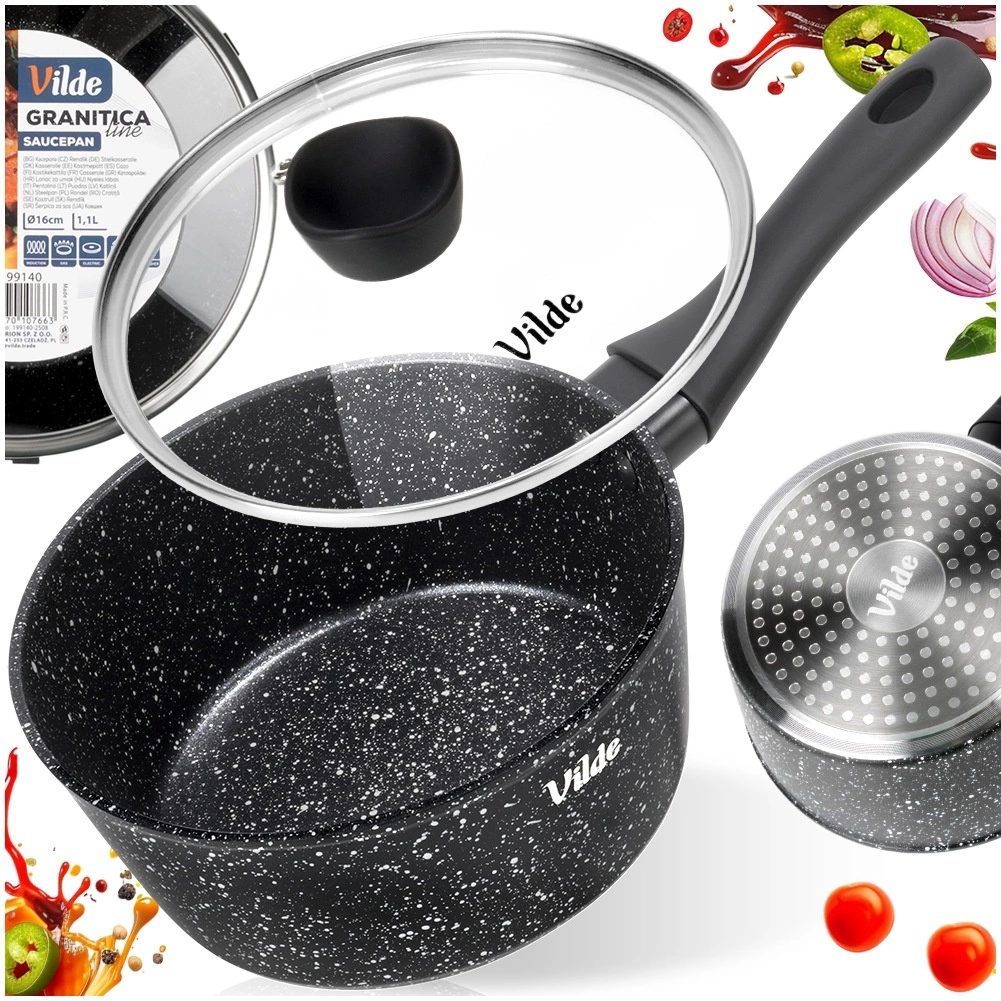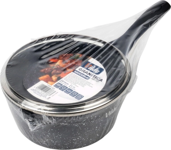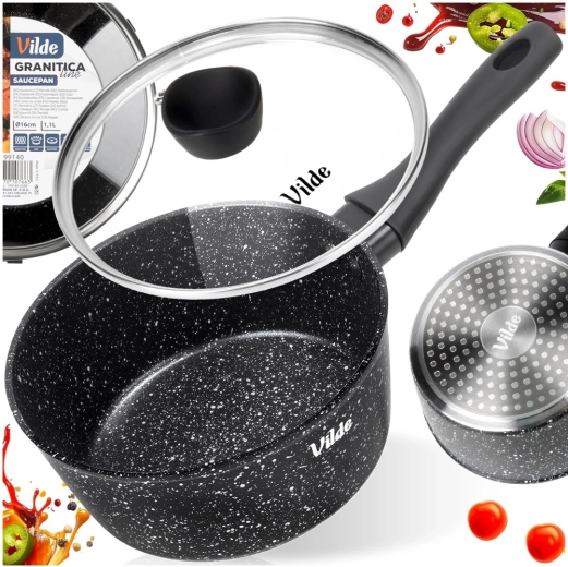 Kompaktowy rondelek Vilde z linii GRANITICA o średnicy 16 cm i pojemności 1,1 l jest idealny do codziennego gotowania. Dzięki nieprzywierającej granitowej powłoce przygotujesz potrawy z minimalną ilością tłuszczu, szklana pokrywka z otworem do ujścia pary ułatwia kontrolę gotowania, a ergonomiczny uchwyt soft touch zapewnia pewny chwyt. Odpowiedni do wszystkich typów kuchenek, w tym indukcji, oraz do zmywarki.