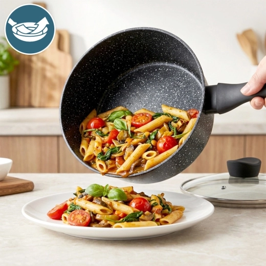 Wielowarstwowa granitowa powłoka minimalizuje przywieranie i umożliwia gotowanie z mniejszą ilością tłuszczu. Czyszczenie jest szybkie i bez wysiłku.