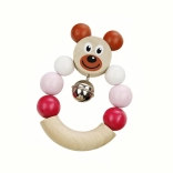 Urocza drewniana grzechotka z misiem w różowym kolorze ucieszy każde niemowlę. Zintegrowany dzwoneczek delikatnie dzwoni, grzechotka jest bardzo lekka i dzięki kompaktowym wymiarom 7 × 9 cm świetnie leży w małych rączkach. Produkt spełnia surowe wymagania UE dotyczące bezpieczeństwa zabawek i może pochwalić się certyfikatem Bezpieczna zabawka.