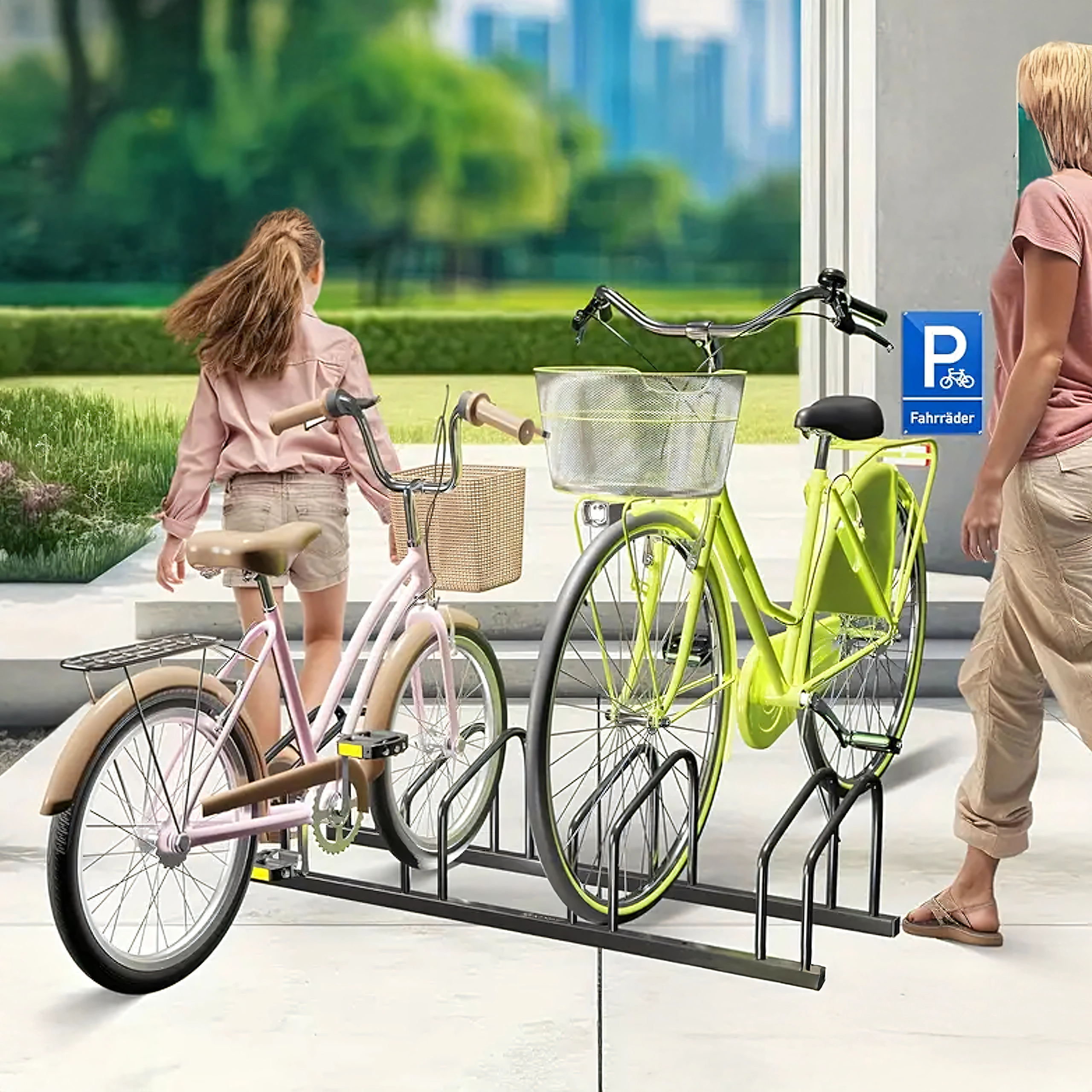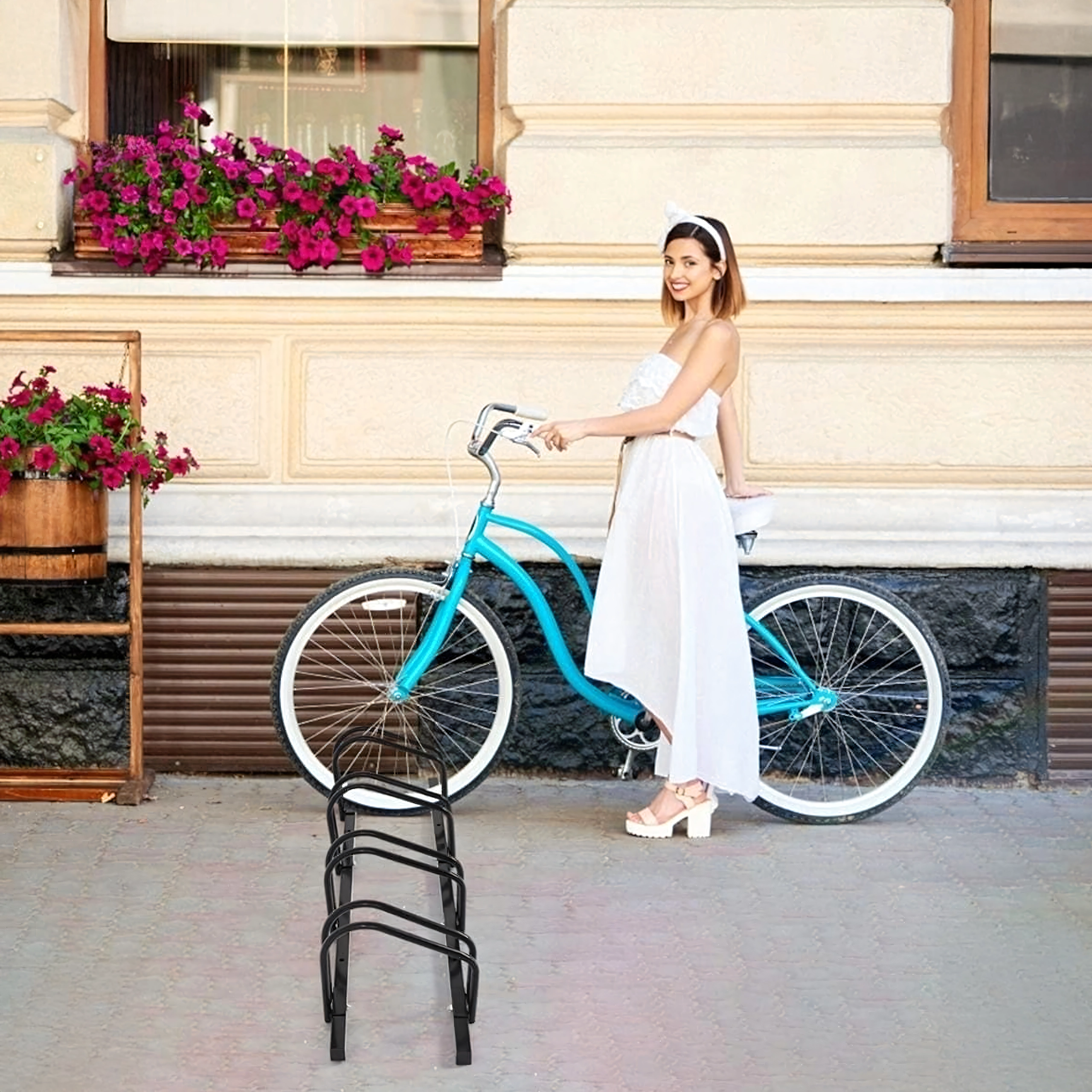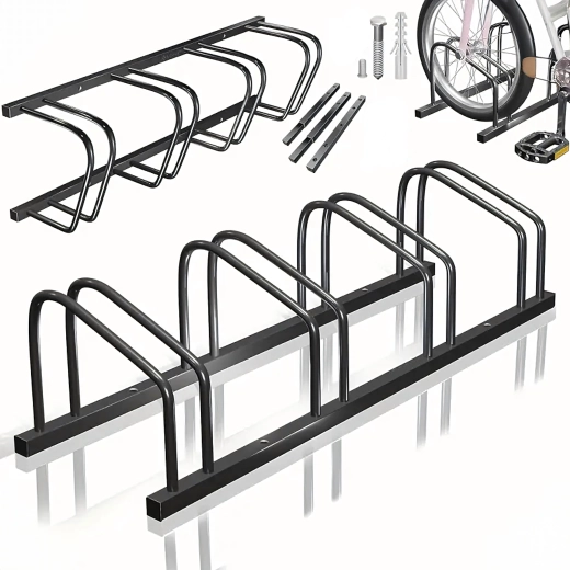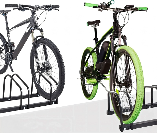Stojak pomaga utrzymać porządek, chroni obręcze przed przewróceniem i ułatwia szybkie parkowanie oraz wyjmowanie roweru. Uniwersalna szerokość łuków pasuje do większości standardowych opon rowerów miejskich, trekkingowych i szosowych.