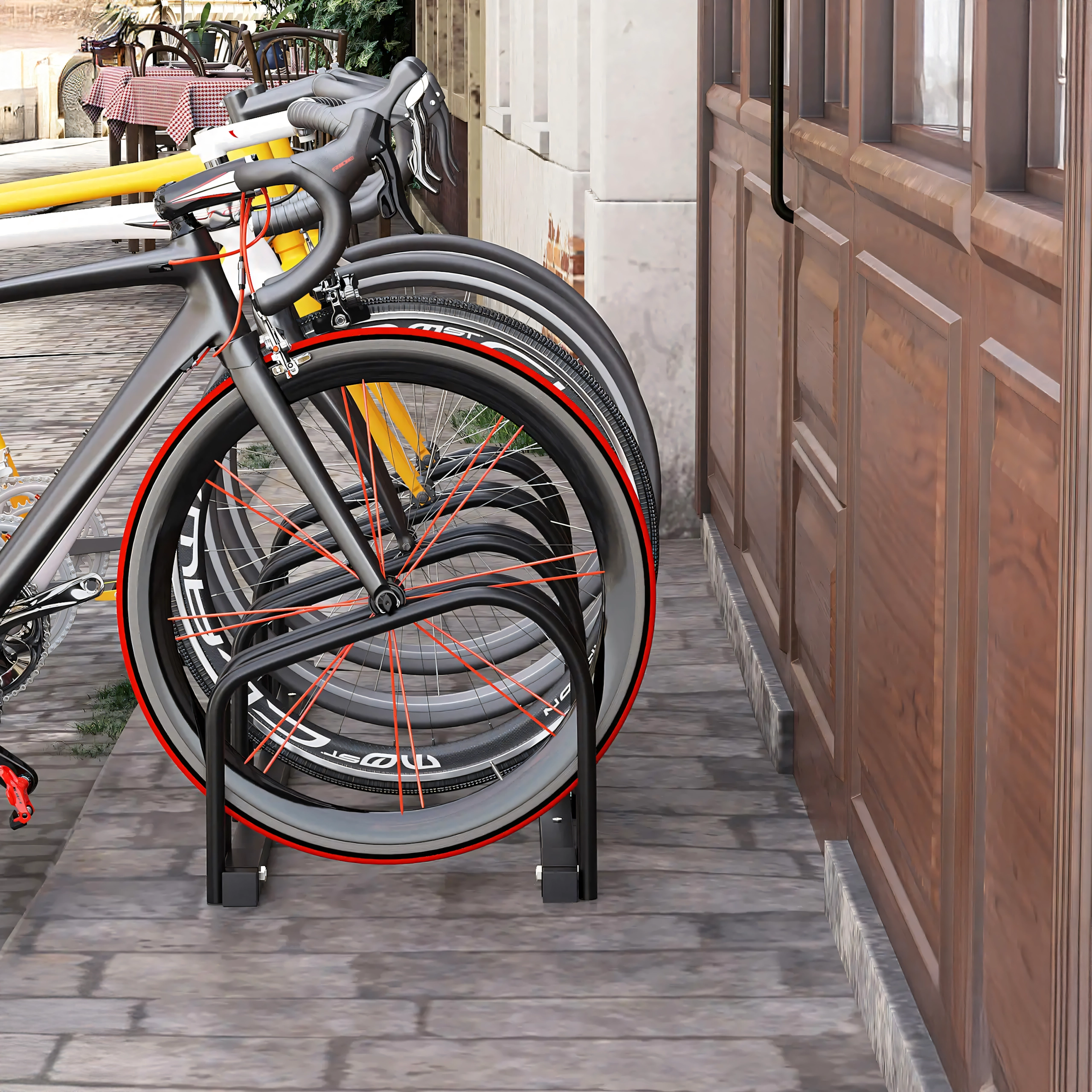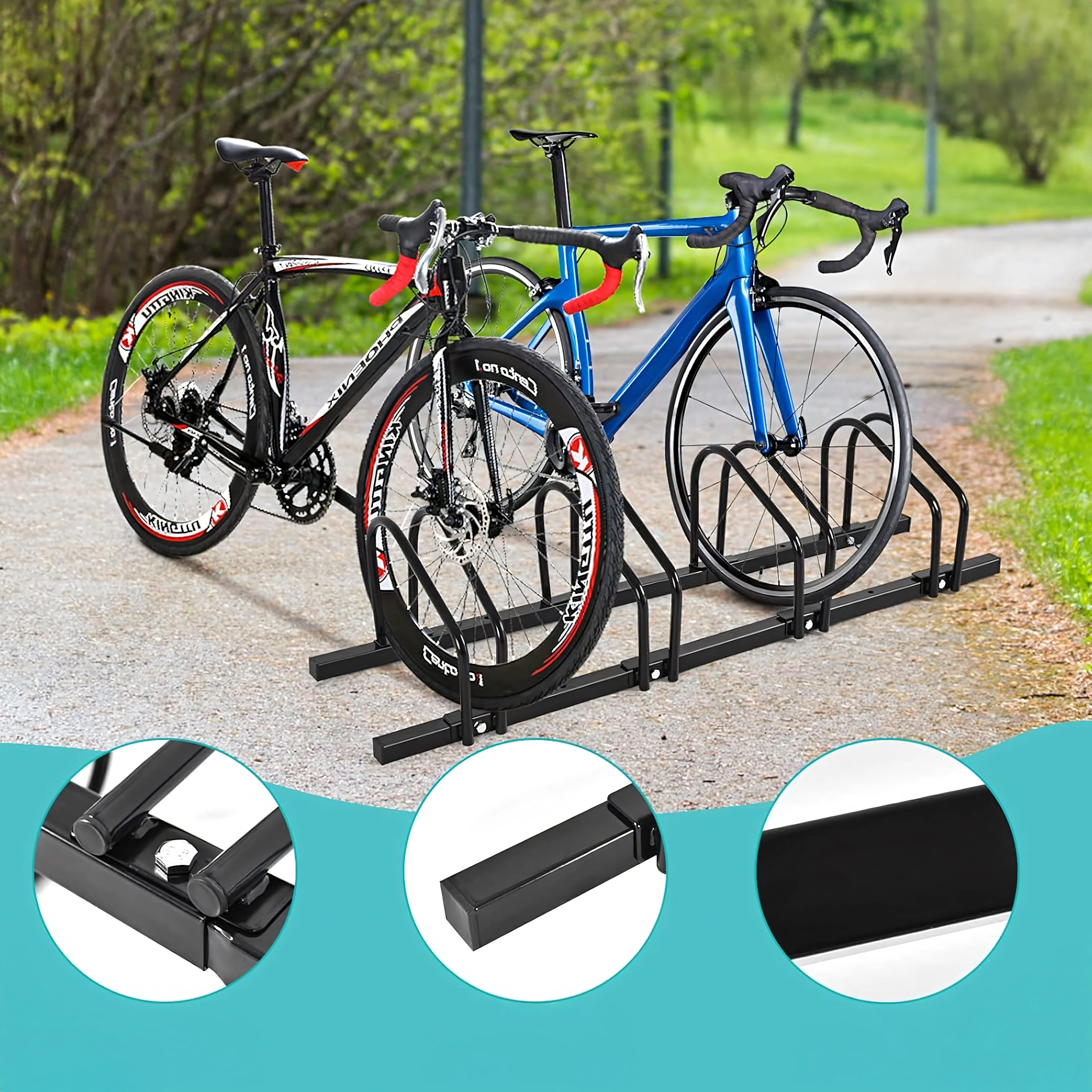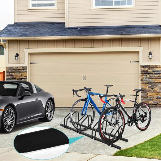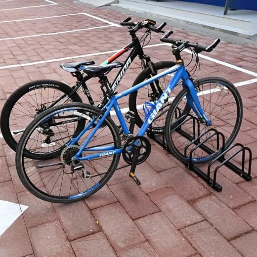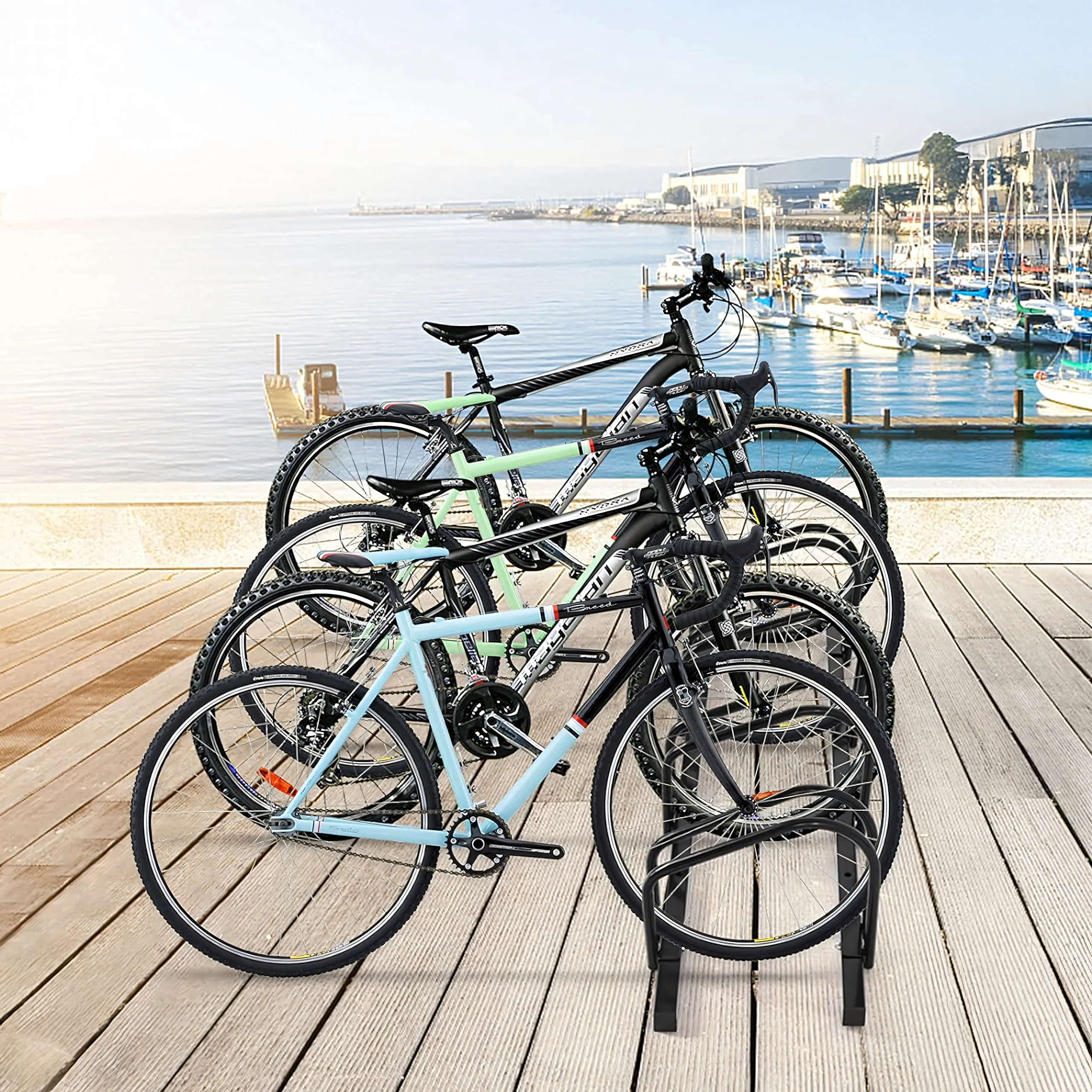 Stojak pomaga utrzymać porządek, chroni obręcze przed przewróceniem i ułatwia szybkie parkowanie oraz wyjmowanie roweru. Uniwersalna szerokość łuków pasuje do większości standardowych opon rowerów miejskich, trekkingowych i szosowych.