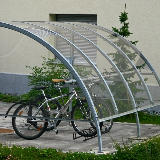 Wielokrotne sloty utrzymują do czterech rowerów w pozycji pionowej, przejrzyście i bezpiecznie na niewielkiej przestrzeni.
