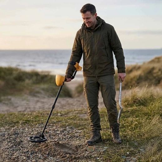 Ergonomiczna konstrukcja z regulowaną długością drążka, podłokietnikiem i miękkim uchwytem zapewnia komfort nawet podczas dłuższych poszukiwań. Wbudowane złącze słuchawkowe (stereo/mono) z regulacją głośności oraz wielotonowa odpowiedź dźwiękowa umożliwiają wygodną pracę także o zmierzchu, gdy możesz bardziej polegać na słuchu niż wzroku.