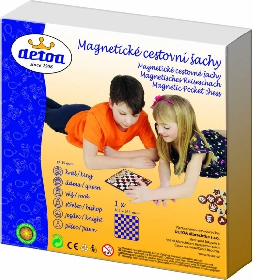 Detoa Magnetyczne szachy podróżne oferują świetną zabawę dla całej rodziny. Zestaw zawiera metalową szachownicę o wymiarach 16,5x16,5 cm, która bezpiecznie utrzymuje pionki dzięki magnetycznemu podkładowi. Dzięki temu nie musisz się obawiać, że figury przesuną się w trakcie gry.