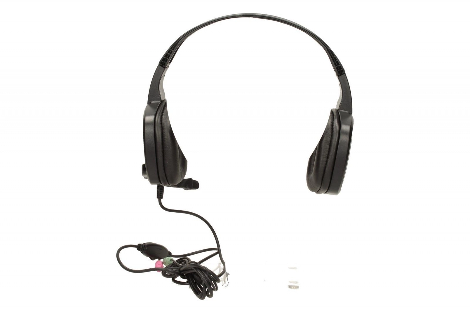 Pleciony przewód 2,2 m z regulacją głośności in-line oraz podwójnymi złączami 3,5 mm dla słuchawek i mikrofonu zapewnia stabilne połączenie z komputerem.