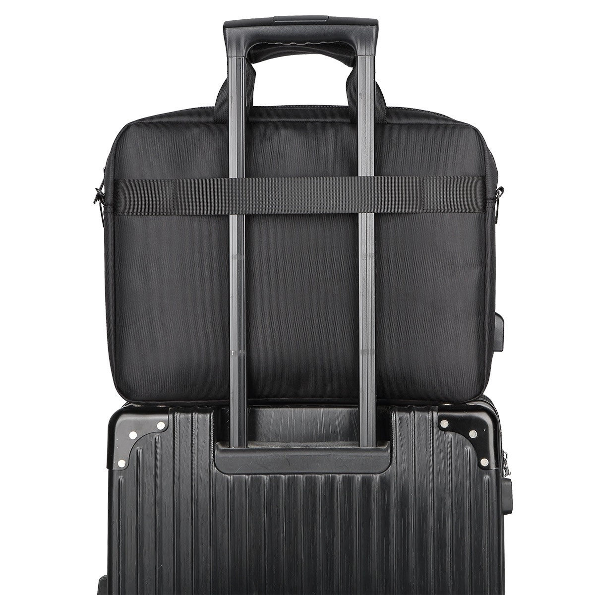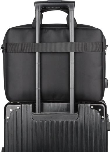 Dzięki zewnętrznemu portowi USB możesz trzymać powerbank bezpiecznie w środku, a telefon wygodnie ładować z zewnątrz — idealne na długie dni w podróży. Wyściełane uchwyty ze spinką na rzep równomiernie rozkładają ciężar, a odpinany regulowany pasek i pas na uchwyt walizki zapewniają maksymalny komfort przenoszenia. Trwały wodoodporny poliester chroni zawartość podczas drobnego deszczu.