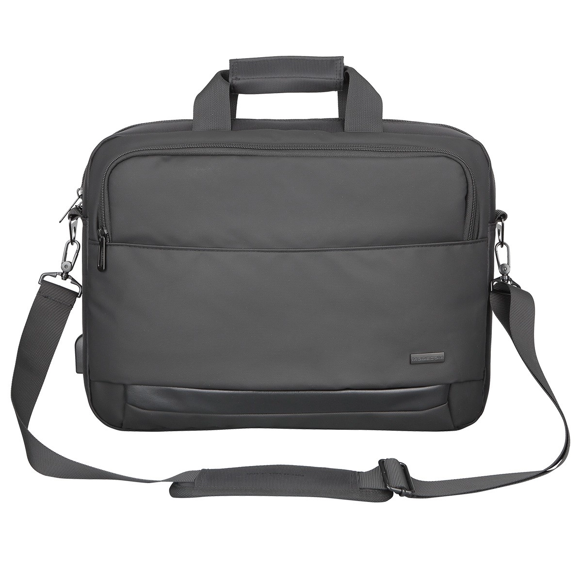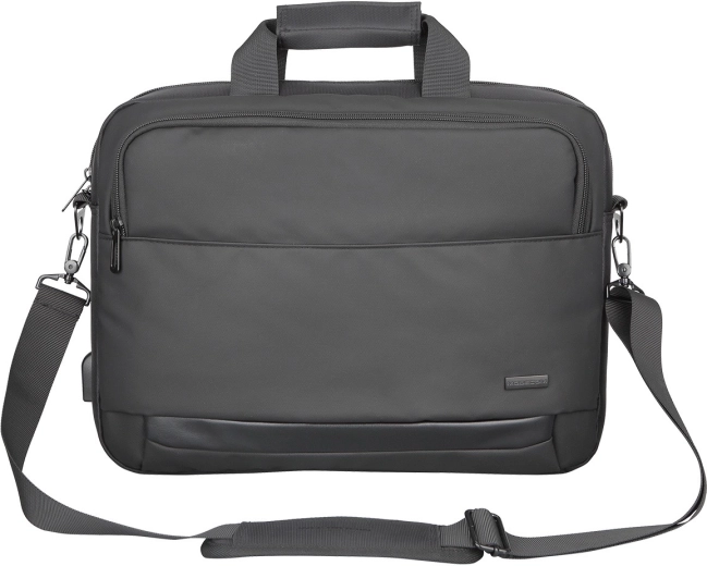 Elegancka i wytrzymała torba MODECOM Porto na laptopy 15,6″ łączy niską wagę, wzmacnianą konstrukcję oraz praktyczny port USB do ładowania w podróży. Oferuje wyściełaną komorę główną, wygodne, wyściełane uchwyty ze spinką na rzep, odpinany i regulowany pasek na ramię oraz pas do mocowania na walizce. Zewnętrzna kieszeń na zamek i wodoodporny poliester zapewniają porządek i ochronę Twoich urządzeń oraz dokumentów.