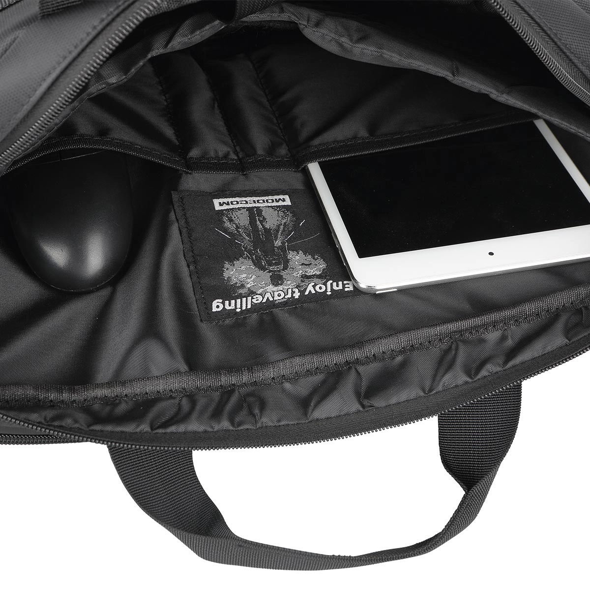 Duża komora główna, dwie wewnętrzne kieszenie oraz przednia kieszeń na zamek utrzymają akcesoria na swoim miejscu. Wzmocnione ścianki i wyściółka zwiększają bezpieczeństwo urządzeń.