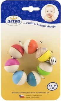 Grzechotka Detoa jest doskonałym wyborem dla twojego maluszka. Kolorowe i naturalne półkuleczki wraz z dzwoneczkiem, który delikatnie dzwoni, czynią tę zabawkę ulubionym towarzyszem.