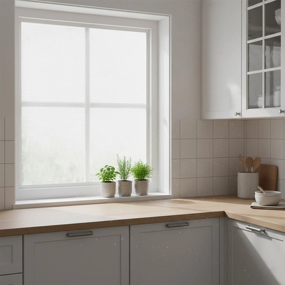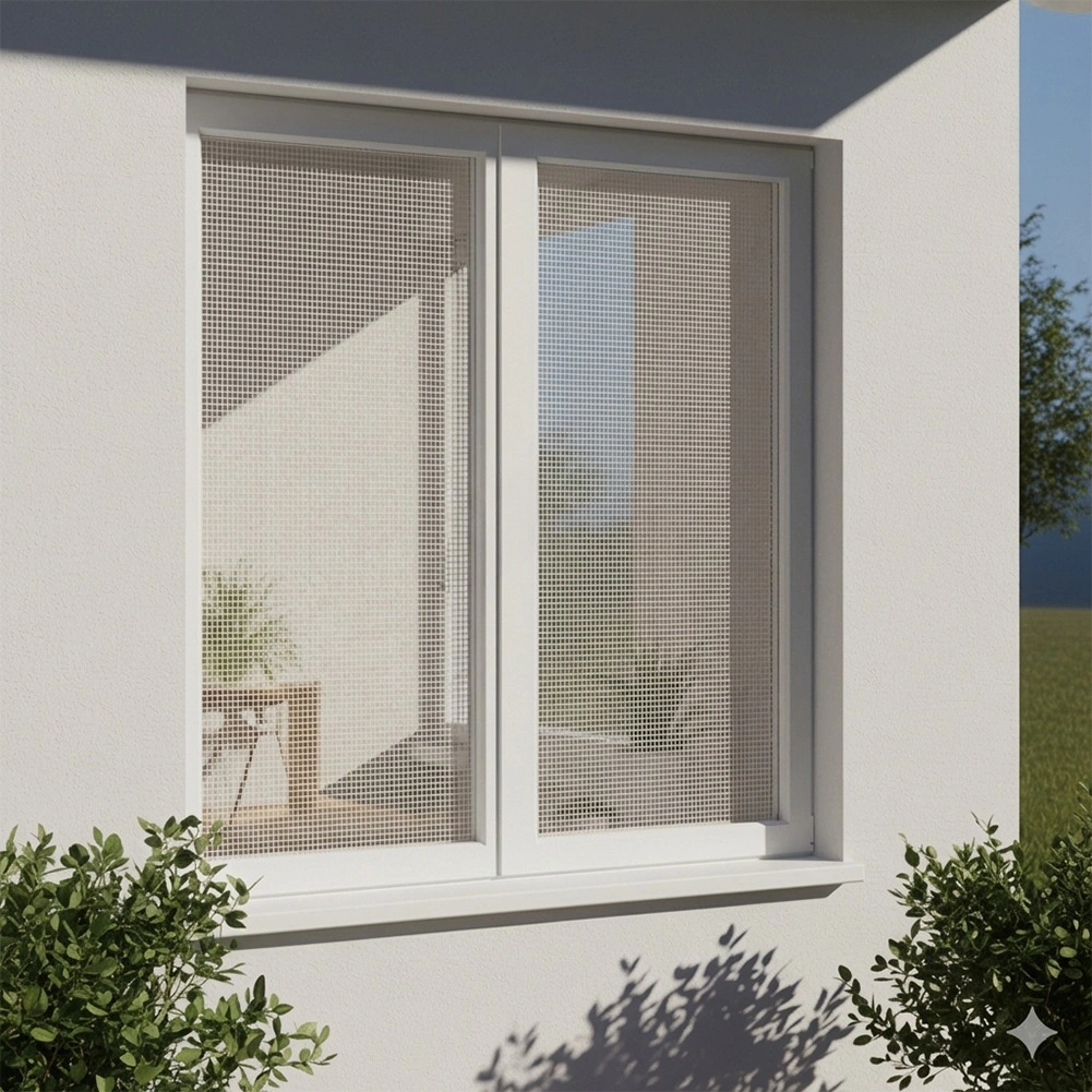 Gęsta biała siatka skutecznie blokuje owady, a jednocześnie przepuszcza światło i powietrze, dzięki czemu zachowasz jasność i widok z okna.