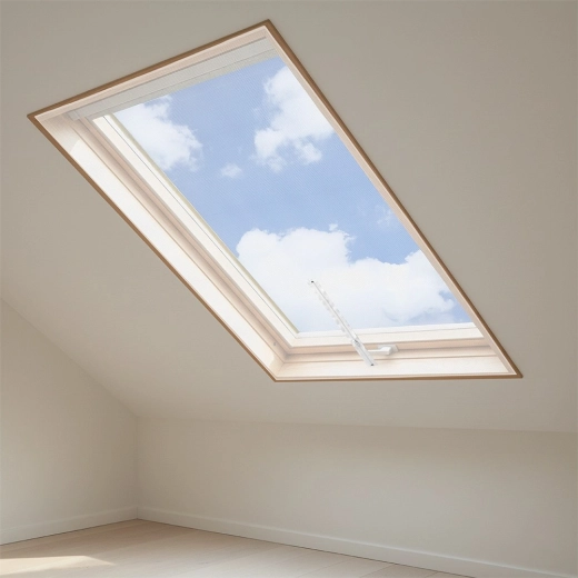 Montaż jest szybki i bez narzędzi – w zestawie znajduje się samoprzylepny rzep do mocowania do ramy, zamek błyskawiczny do łatwego otwierania bez zdejmowania siatki oraz praktyczne narzędzie do wygodnego wykończenia. Idealne rozwiązanie do pomieszczeń na poddaszu i wszystkich okien w skośnych dachach.