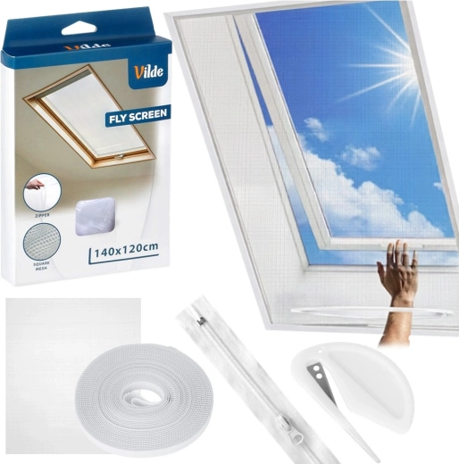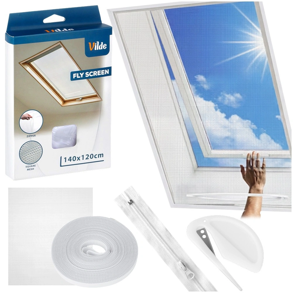 Praktyczna moskitiera na okna dachowe o wymiarach 140 × 120 cm chroni dom przed owadami, a jednocześnie przepuszcza świeże powietrze i światło. Dzięki możliwości łatwego przycięcia idealnie dopasuje się do Twojego okna. W zestawie znajduje się samoprzylepny rzep, zamek błyskawiczny do wygodnego otwierania oraz narzędzie montażowe do szybkiego montażu bez użycia narzędzi.
