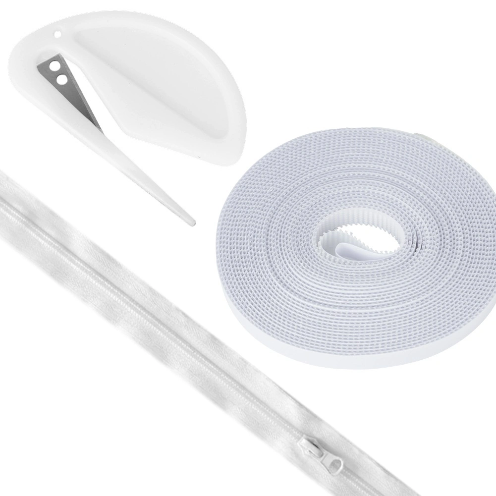 - Siatka przeciw owadom, taśma samoprzylepna (rzep), pas z zamkiem, narzędzie montażowe
