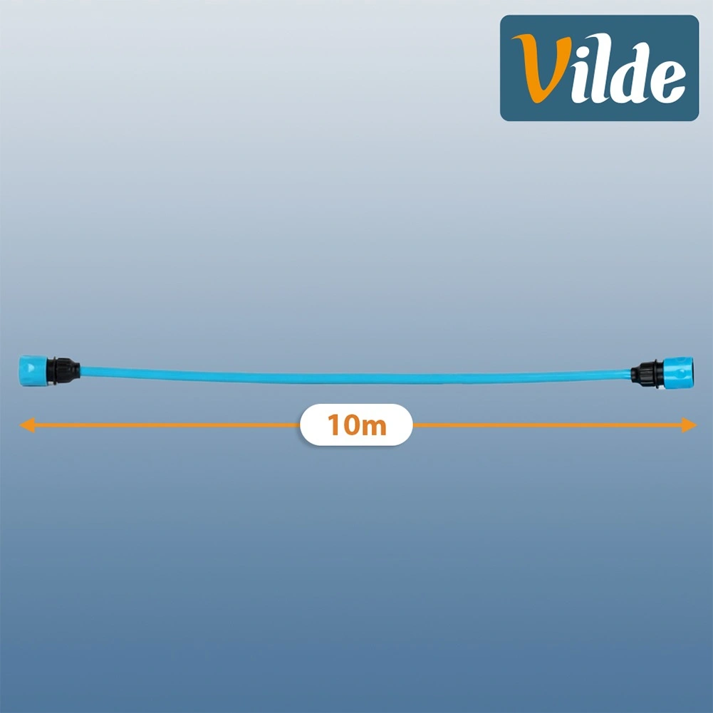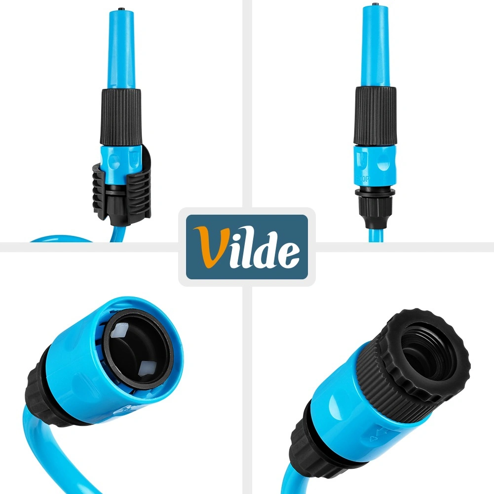 Kompletny zestaw zawiera wszystko, co potrzebne: dwie szybkozłączki do szybkiego podłączenia do kranu i akcesoriów, pistolet zraszający do wygodnej regulacji strumienia wody oraz uchwyt ścienny do przejrzystego przechowywania. Wytrzymałe wykonanie z tworzywa w niebieskim kolorze zapewnia elastyczność i długą żywotność.