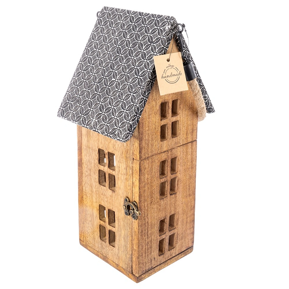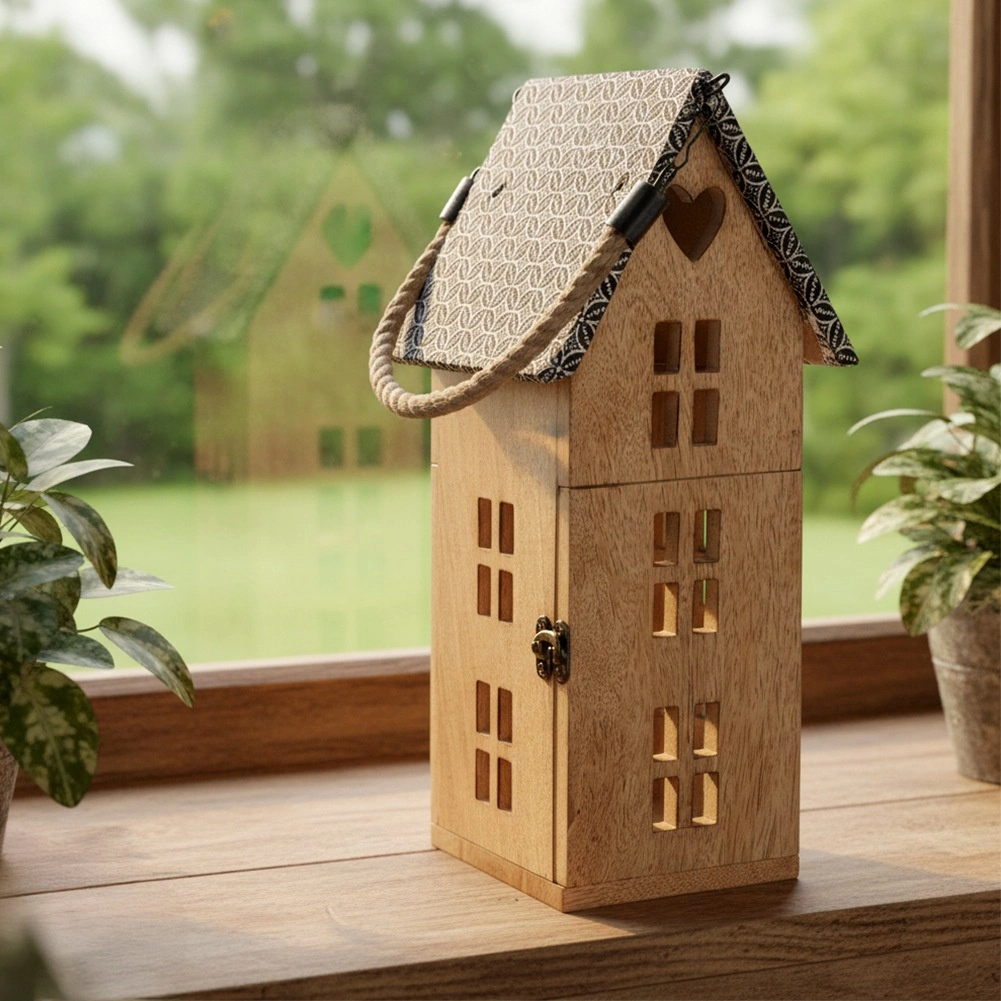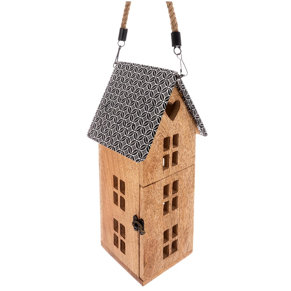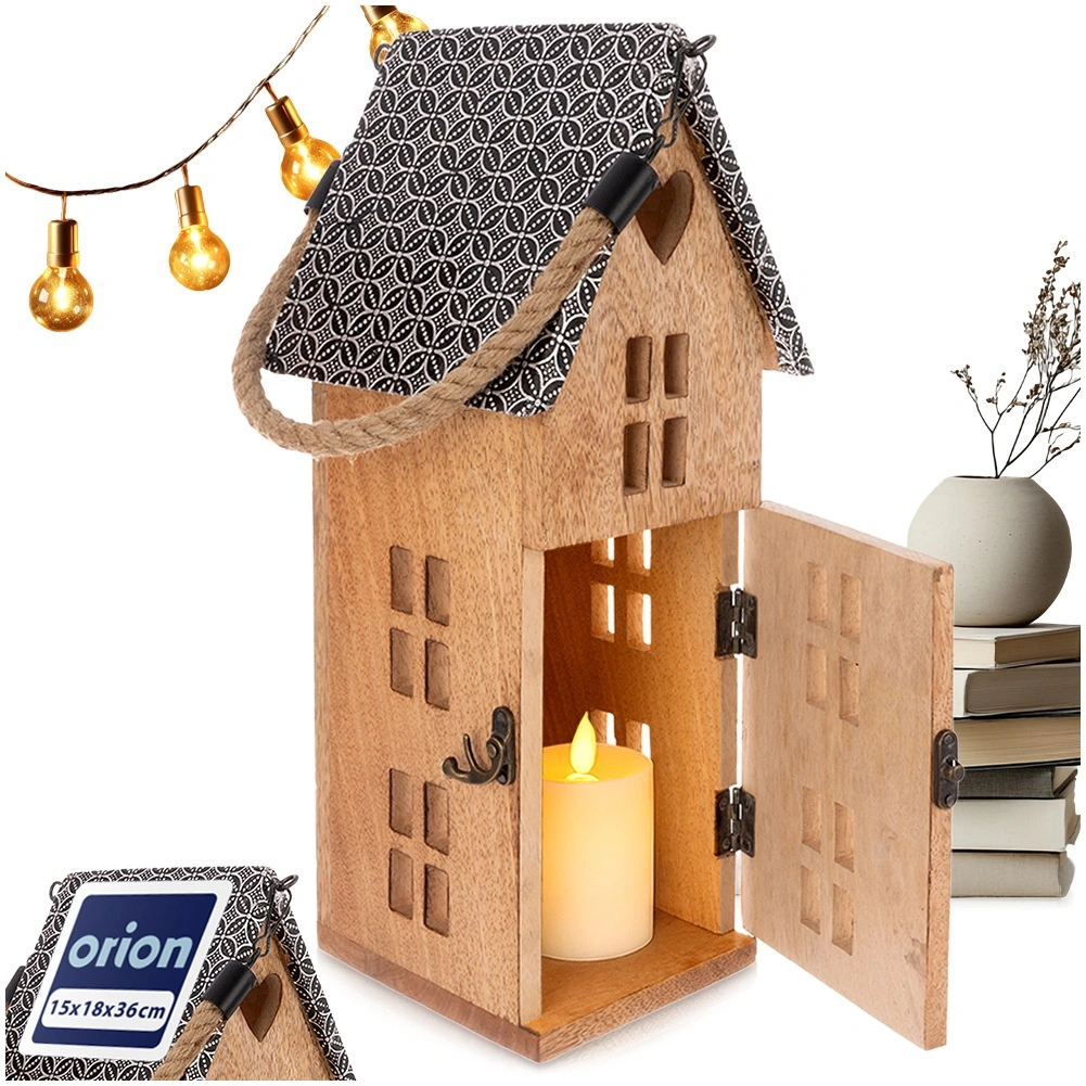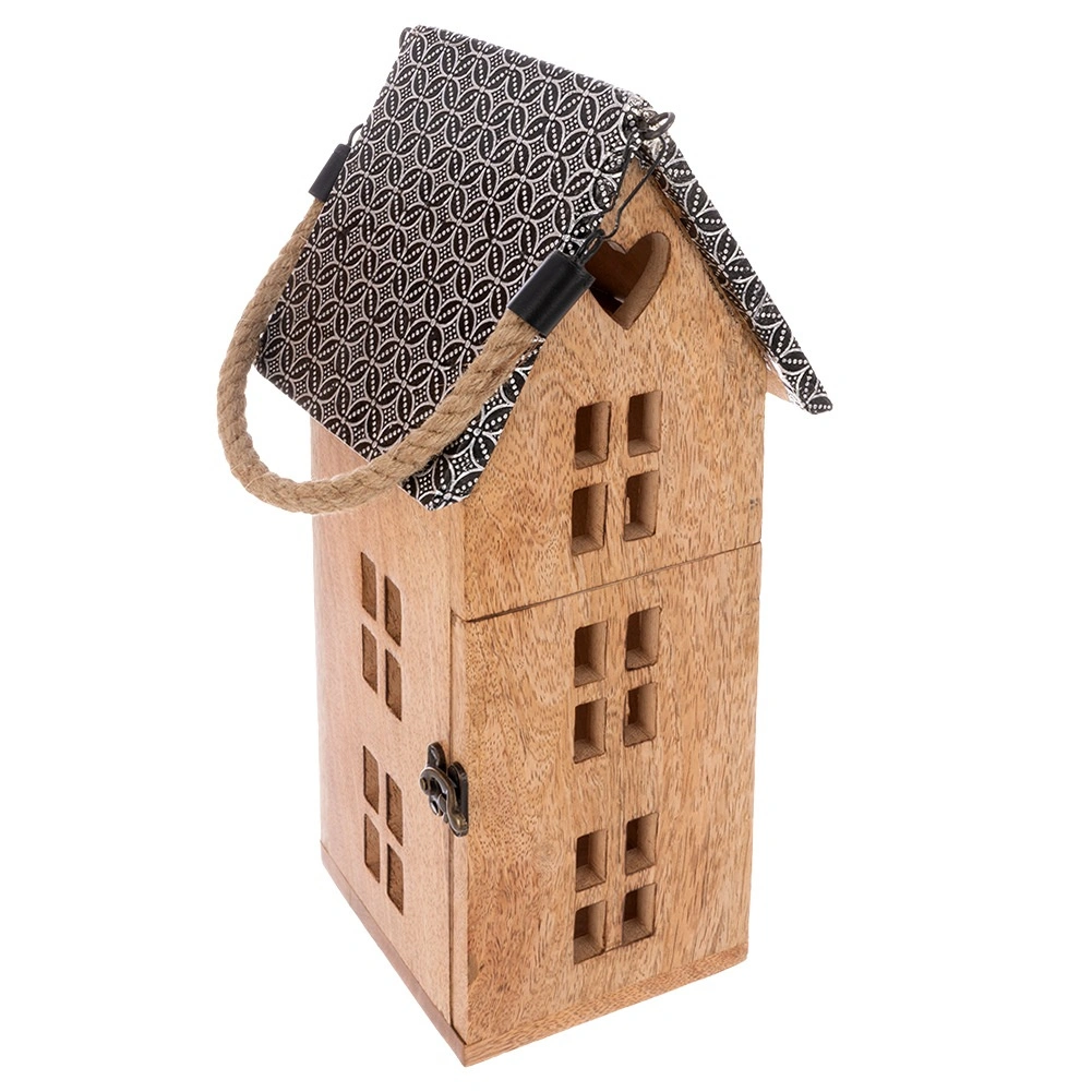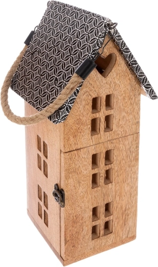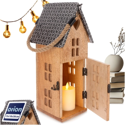 Odkryj wyjątkowy lampion w kształcie domku, który stworzy ciepłą atmosferę w salonie, sypialni i na zadaszonym tarasie. Ręcznie wykonany z drewna mango zachwyca naturalnym rysunkiem i barwą, doskonale komponując się ze stylem nowoczesnym i rustykalnym. Metalowy dach i solidne okucia zapewniają długą żywotność, a świeca LED – bezpieczne użytkowanie bez dymu i sadzy.
