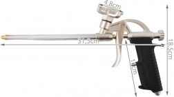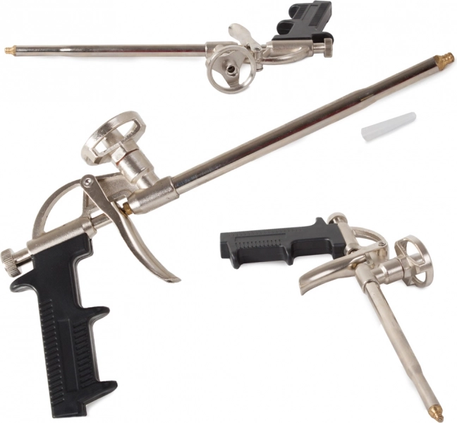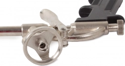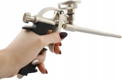 Ergonomiczny, profilowany uchwyt zapewnia pewny i wygodny chwyt także w trudno dostępnych miejscach. Precyzyjna dysza umożliwia celowaną aplikację bez zbędnego marnowania, a pokrętło regulacyjne po całkowitym dokręceniu odcina dopływ powietrza do dyszy i zapobiega utwardzaniu się pianki wewnątrz narzędzia.