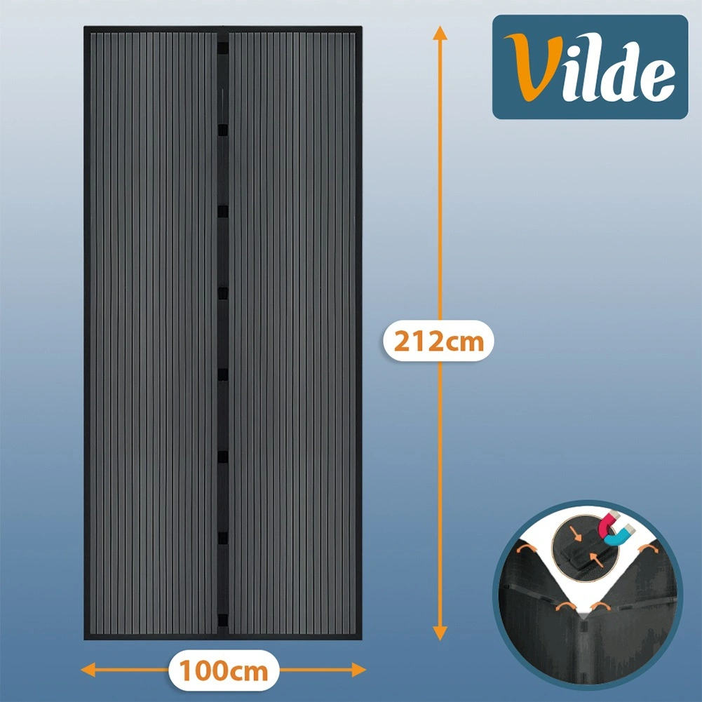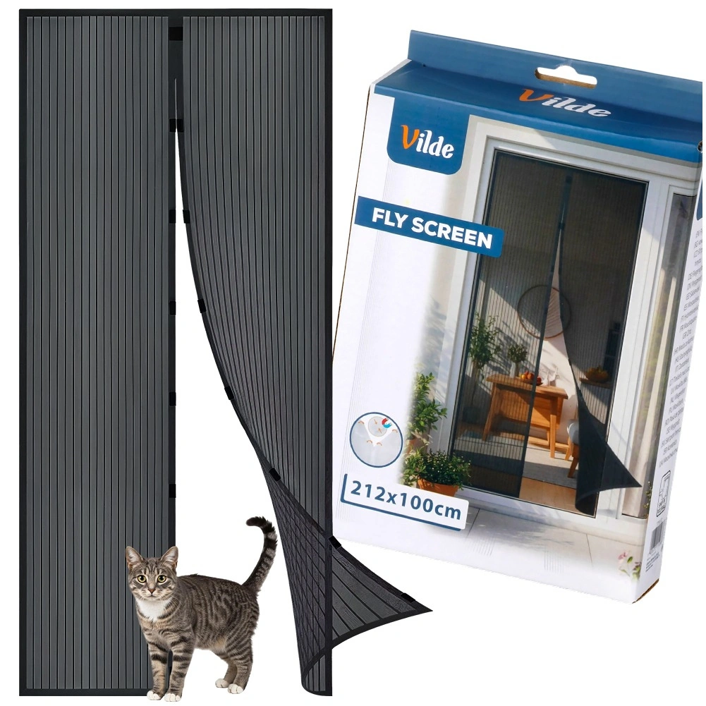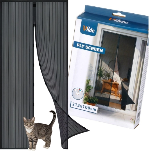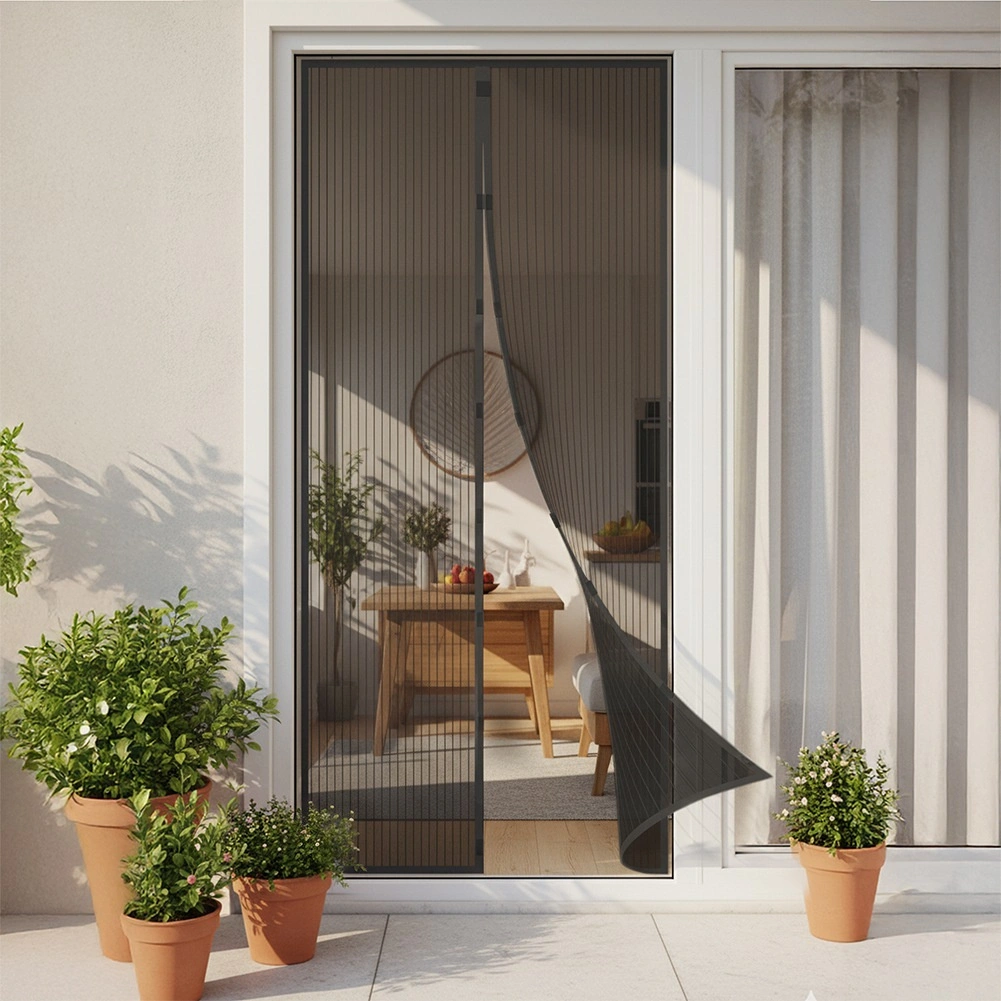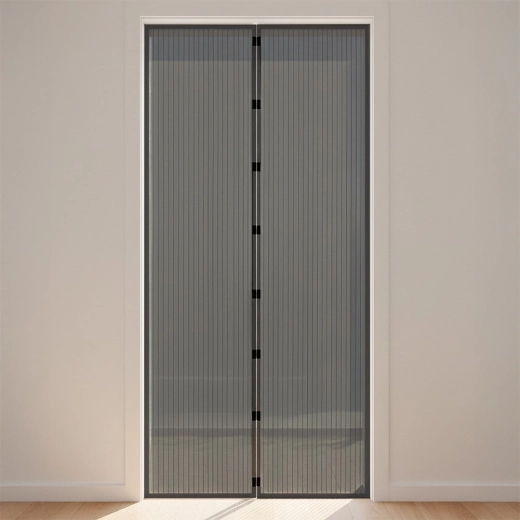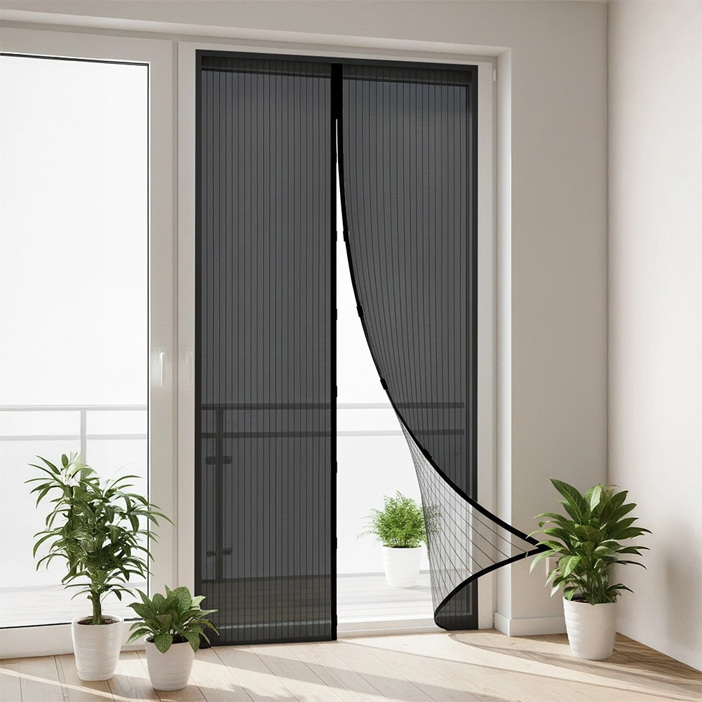 Praktyczna magnetyczna moskitiera na drzwi o wymiarach 212 × 100 cm w eleganckim czarnym kolorze. Dwa solidne panele siatkowe łączą się automatycznie pośrodku dzięki magnesom, umożliwiając przechodzenie bez użycia rąk. Drobna siatka z wytrzymałego poliestru zapewnia skuteczną ochronę przed owadami, a jednocześnie przepuszcza światło i świeże powietrze. Łatwy montaż za pomocą samoprzylepnego rzepa lub dołączonych pinezek, z możliwością przycięcia na wymiar.