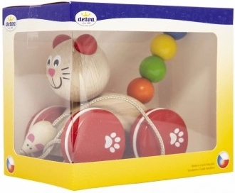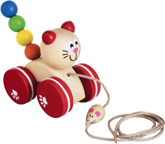 Czy Twoje dziecko zaczyna odkrywać świat pierwszych kroków? Podaruj mu drewnianą zabawkę do ciągnięcia w kształcie kota z myszką dla większej zabawy.