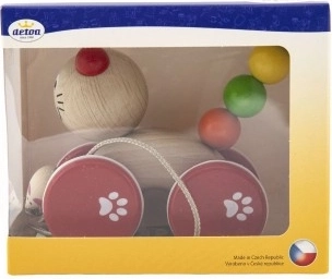 Ta dziecięca zabawka do ciągnięcia w kształcie kota z pewnością zaintryguje każde małe dziecko, które już odkrywa świat pierwszych kroków. Z kotem na sznurku myszka zabawnie jeździ, co dodaje zabawie kolejny wymiar.
