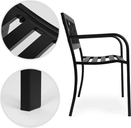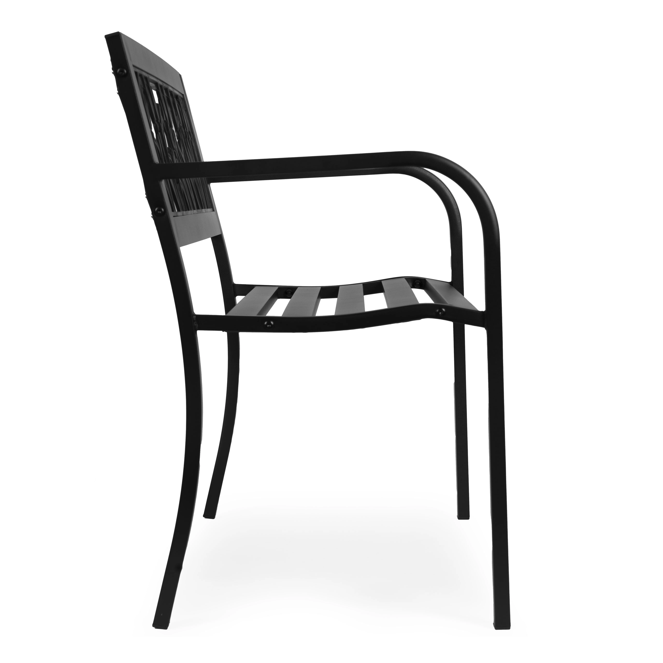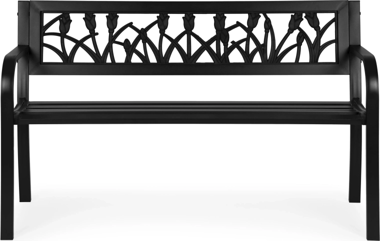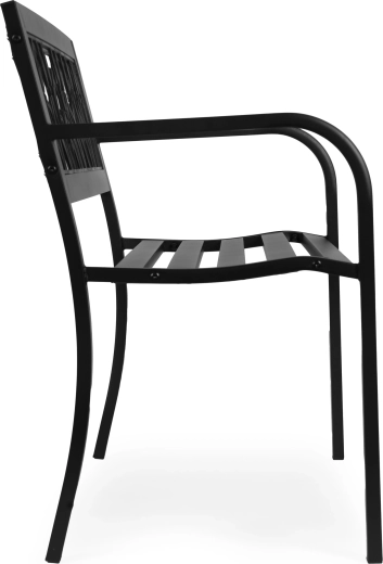 Ciesz się chwilami relaksu na trwałej i wygodnej ławce MultiGarden. Czarna, metalowa konstrukcja z ażurowym kwiatowym wzorem na oparciu łatwo komponuje się z klasycznymi i nowoczesnymi aranżacjami zewnętrznymi. Stal malowana proszkowo lepiej opiera się korozji i drobnym zarysowaniom, a wypełnienie oparcia z PVC jest łatwe w pielęgnacji i odporne na wilgoć.