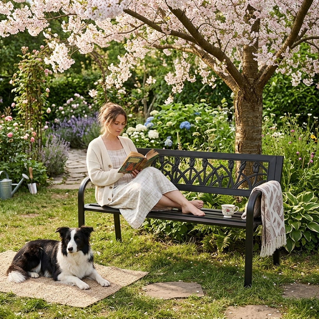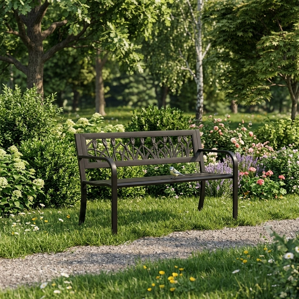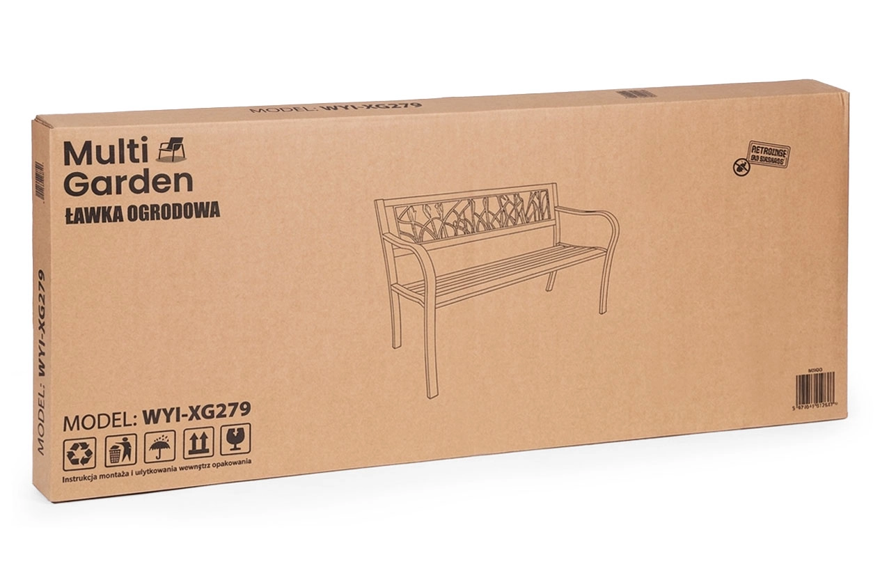 Elegancka ławka ogrodowa MultiGarden w stylu parkowym wprowadzi do Twojego ogrodu, na taras i balkon wygodę oraz styl. Dzięki solidnej stalowej konstrukcji malowanej proszkowo, odporności na warunki atmosferyczne i ergonomicznemu oparciu z kwiatowym motywem z PVC oferuje długą żywotność i przyjemne siedzenie. Antypoślizgowe stopki chronią podłogę i zapewniają stabilność. Maksymalna nośność 260 kg.
