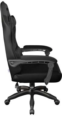 Stabilna podstawa z podnośnikiem gazowym dba o pewność siedzenia, a gumowane kółka poruszają się po podłodze cicho i delikatnie. Miękkie podłokietniki odciążą ramiona i przedramiona nawet w najbardziej wymagających momentach gry.