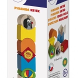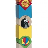 Drewniana zabawka piramidka z ulubionym Krecikiem rozwija wyobraźnię, logiczne myślenie oraz umiejętności motoryczne dzieci.