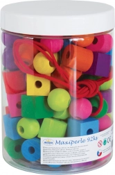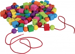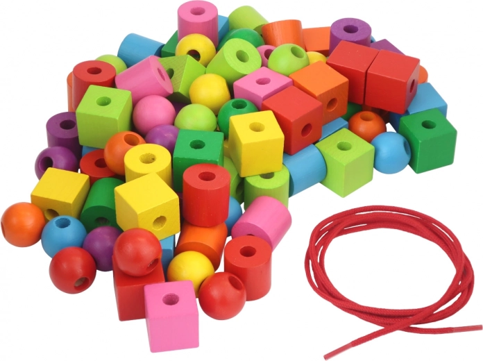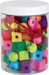 Kolorowe drewniane duże korale są idealną pomocą dla dzieci od 3 lat, które chcą ćwiczyć swoją zręczność i jednocześnie się bawić. Zestaw zawiera 92 elementy w różnych kształtach i kolorach, które można nawlekać na dołączony solidny sznurek.
