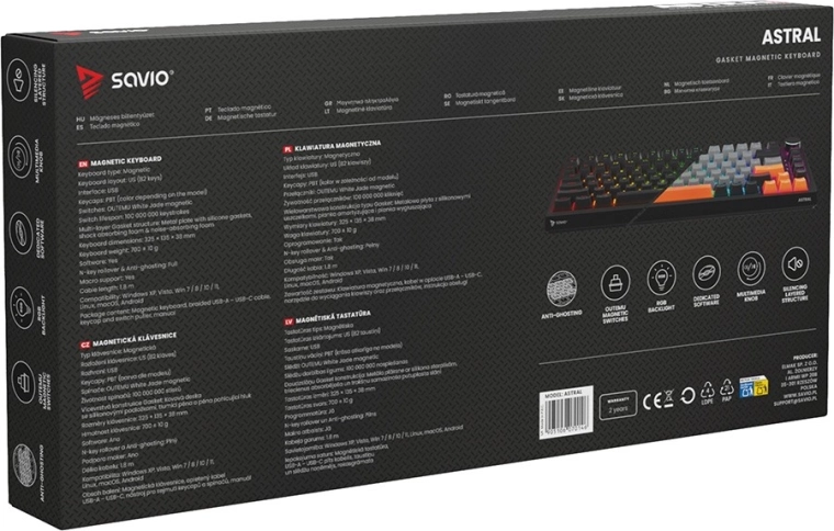 Klawiatura Astral zmienia zasady gry: zamiast klasycznych styków wykorzystuje magnetyczne wykrywanie (efekt Halla), dzięki czemu skok jest szybszy, płynniejszy i dokładniejszy. Konstrukcja Gasket Mount z metalową płytą, silikonowymi uszczelkami i warstwami pianki tłumi niepożądane rezonanse i hałas, więc pisanie i granie jest komfortowe i kulturalne.