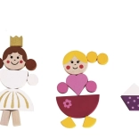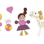 Kolorowe drewniane elementy z magnesem łatwo ułożycie w postacie, zwierzątka i zamki. Dzieci stworzą własne bajki i scenki dokładnie według wyobraźni.
