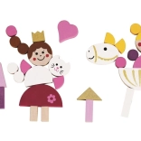 Magnetyczne puzzle Detoa o tematyce księżniczek zapewniają godziny twórczej zabawy. Dzieci mogą łączyć kolorowe drewniane elementy z magnesem i układać własne postacie, zwierzątka oraz małe zamki. Magnetyczna tablica trzyma wszystko pewnie na miejscu, natomiast stojak pozwala pięknie wyeksponować gotowe prace.