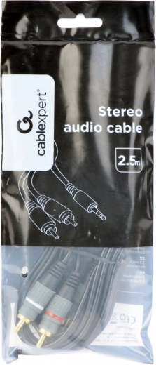 Uniwersalny kabel połączeniowy do urządzeń audio: z stereo jack 3,5 mm na 2× RCA (cinch). Dzięki pozłacanym złączom zapewnia niezawodne połączenie i czysty przesył sygnału. Długość 2,5 m oferuje wygodny zasięg między źródłem dźwięku a wzmacniaczem lub głośnikami.