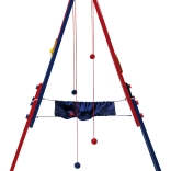 Wytrzymała drewniana konstrukcja z przykręcanymi nogami zapewnia stabilność, a materiałowe wyłapywanie kulek zwiększa bezpieczeństwo i komfort. System sznureczków umożliwia płynne, kontrolowane ruchy i wzmacnia koordynację obu rąk.