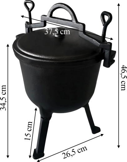 Delektuj się prawdziwym kociołkowym gulaszem, zupami i daniami duszonymi bezpośrednio nad płomieniami. Ten 7‑litrowy żeliwny kociołek z pokrywką stoi pewnie na trzech nogach, więc łatwo ustawisz go nad paleniskiem bez potrzeby osobnego trójnogu. Ciężkie żeliwo doskonale przewodzi i zatrzymuje ciepło, dzięki czemu jedzenie nie stygnie i nie przypala się.