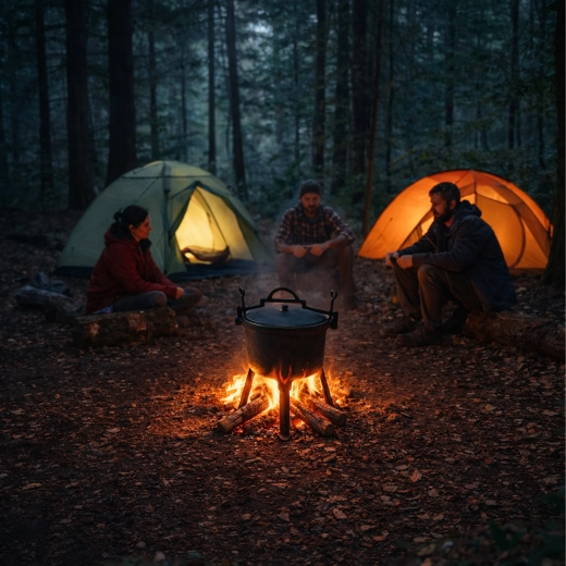 Pokrywka z praktycznym uchwytem utrzymuje wilgoć i aromat wewnątrz, dzięki czemu składniki duszą się równomiernie i pozostają soczyste. Kociołek sprawdzi się na ogrodowym przyjęciu, podczas biwakowania ze skautami i na dłuższych wyprawach – bez trudu ugotujesz w nim porcję dla całej ekipy.