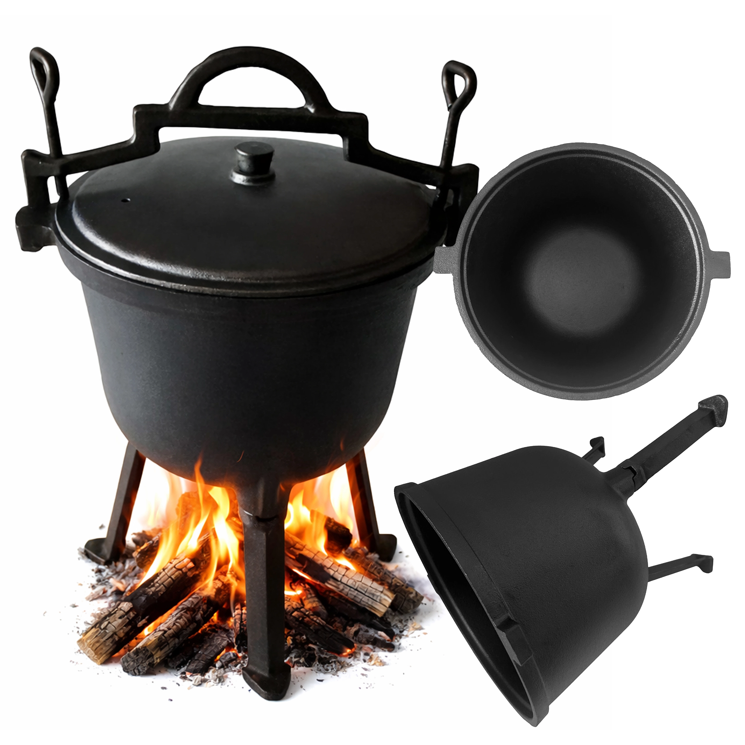 Zintegrowane trzy nogi zapewniają pewne ustawienie kociołka nad paleniskiem – bez skomplikowanych stojaków i wieszaków. Bezpieczne i wygodne gotowanie na zewnątrz w każdym miejscu.