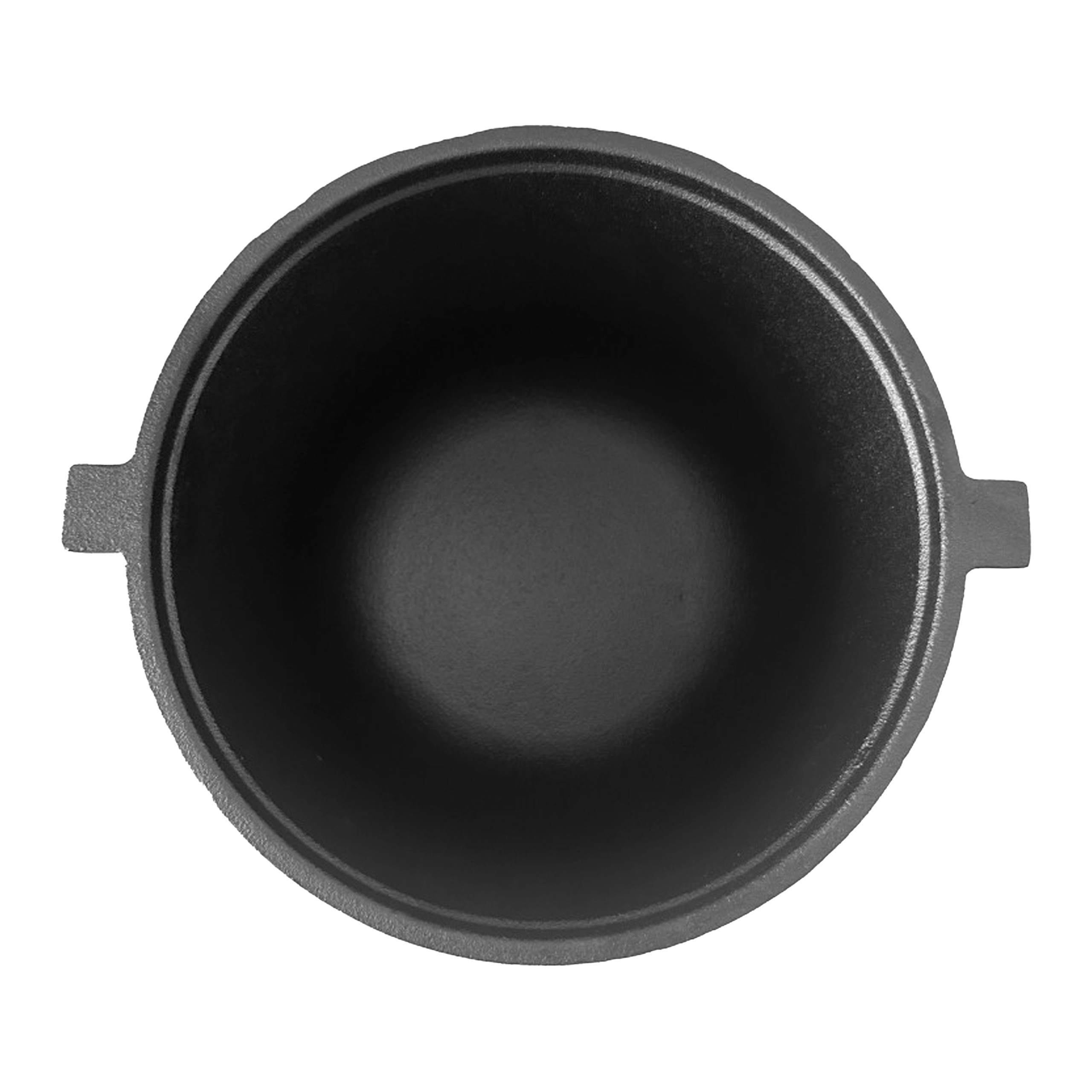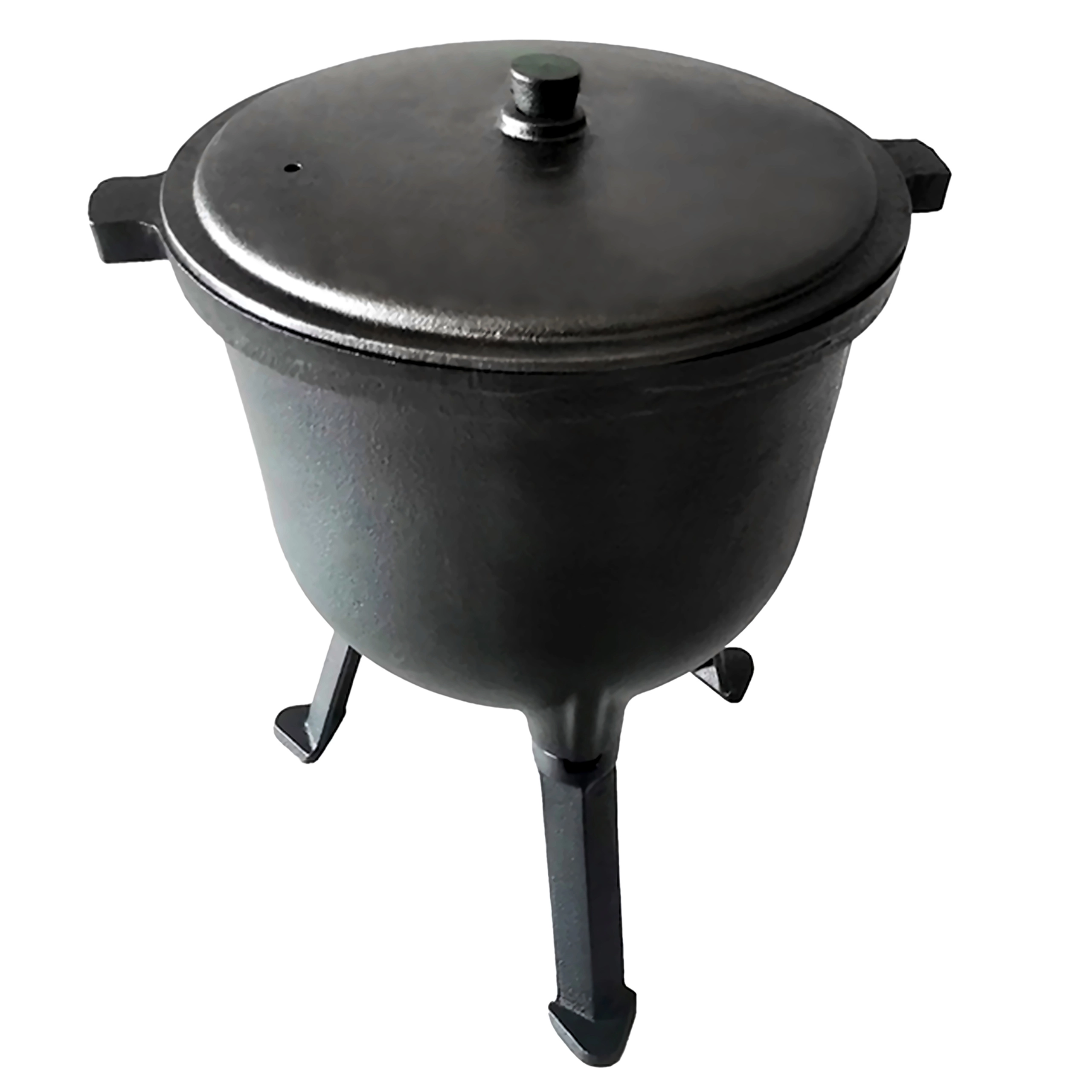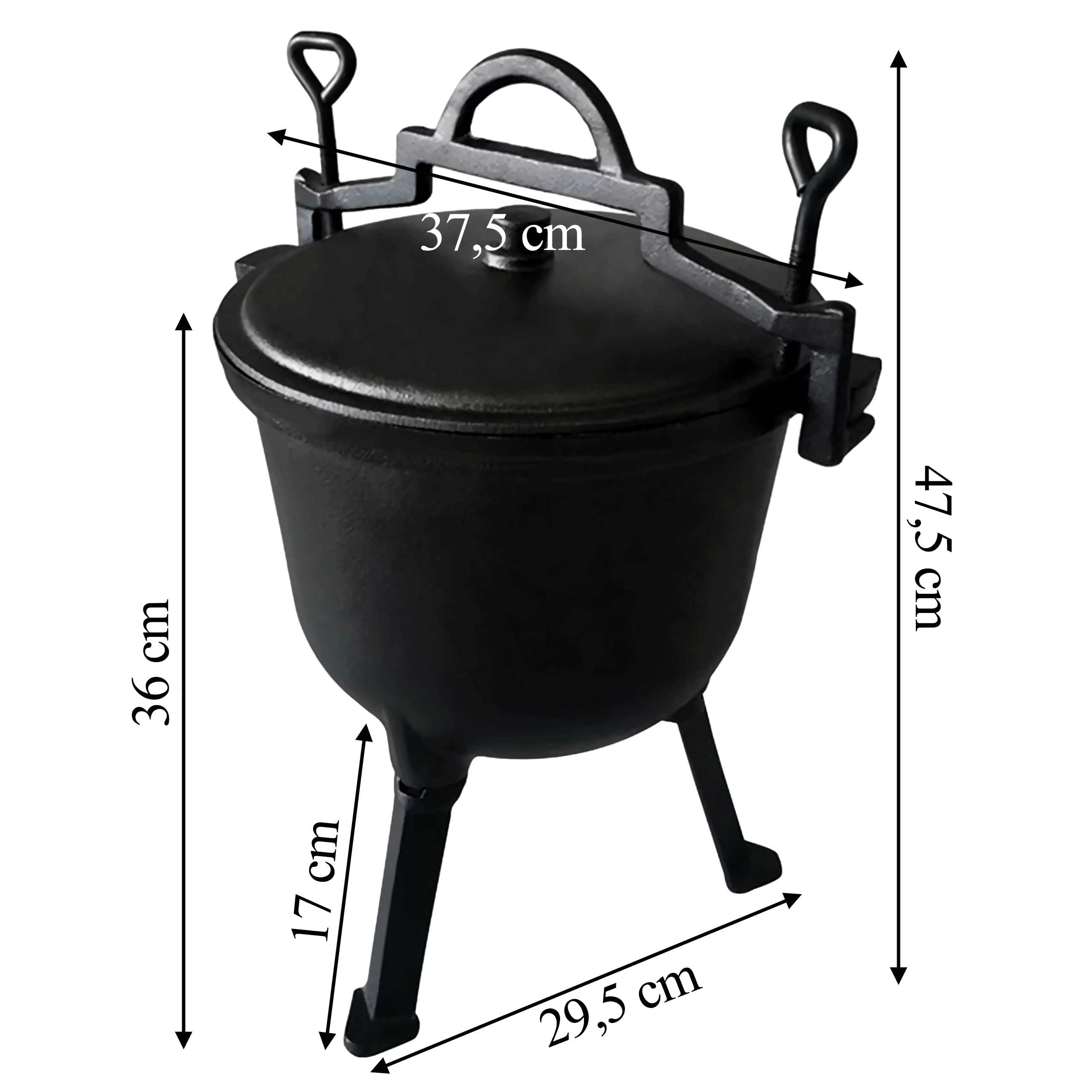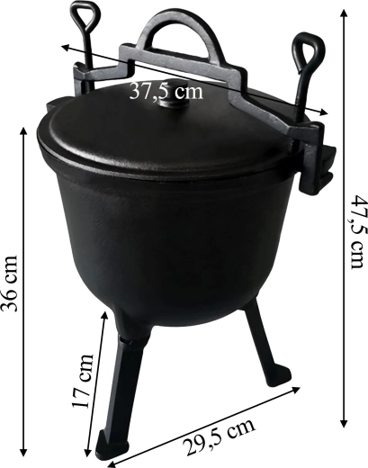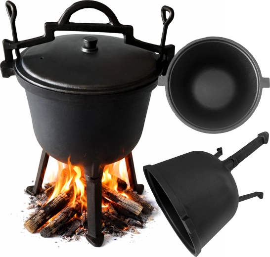 Ten żeliwny kociołek z pokrywką i solidnymi nogami jest doskonały do przygotowywania gulaszy, zup czy gorących napojów nad ogniem. Grube ścianki zapewniają równomierne nagrzewanie i długo trzymają ciepło, dzięki czemu potrawy gotują się spokojnie i bez przypalania. Dzięki praktycznym uchwytom łatwo go przenosić, a pokrywka utrzymuje wilgoć i smak wewnątrz.