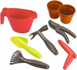 - Wózek na kółkach, doniczki, konewka, dziecięce narzędzia ogrodowe