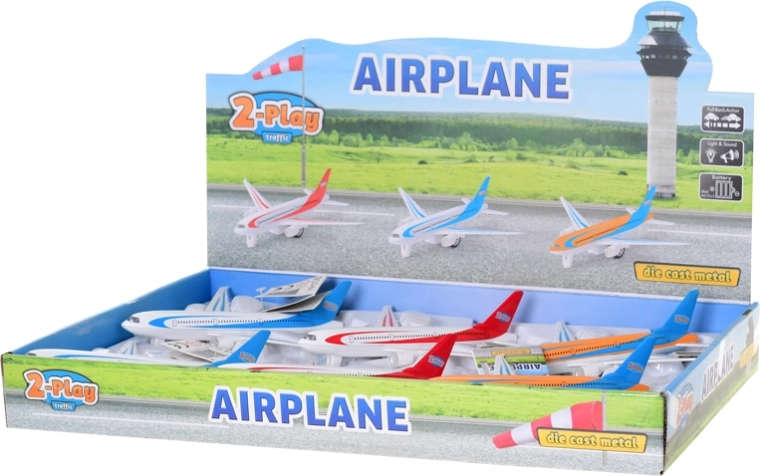 Przeżyj mnóstwo akcji z wytrzymałym metalowym samolotem 2-Play, który dzięki napędowi pull-back po naciągnięciu płynnie rusza do przodu. Realistyczne światło i dźwięk pobudzają dziecięcą wyobraźnię i zamieniają każdy start oraz lądowanie w ekscytującą przygodę.