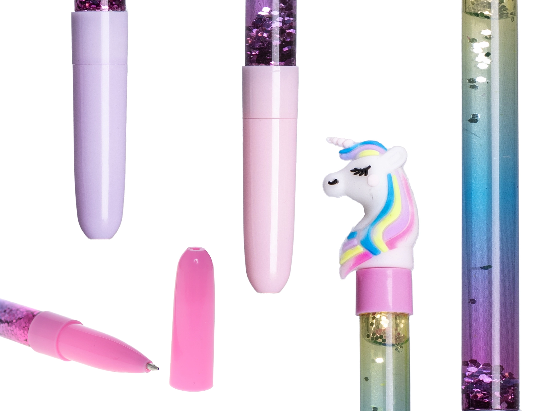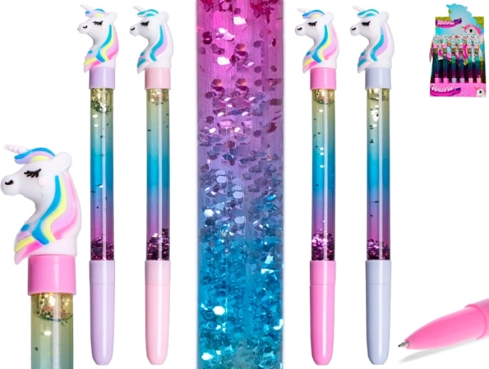 Ten stylowy długopis z uroczym jednorożcem zamieni każde pisanie w zabawę. Dzięki przezroczystemu korpusowi wypełnionemu cieczą z brokatem przy każdym ruchu pióra powstaje urzekający, połyskujący efekt. Długopis wygodnie leży w dłoni i doskonale sprawdzi się w szkole, do notatek oraz jako drobny prezent.